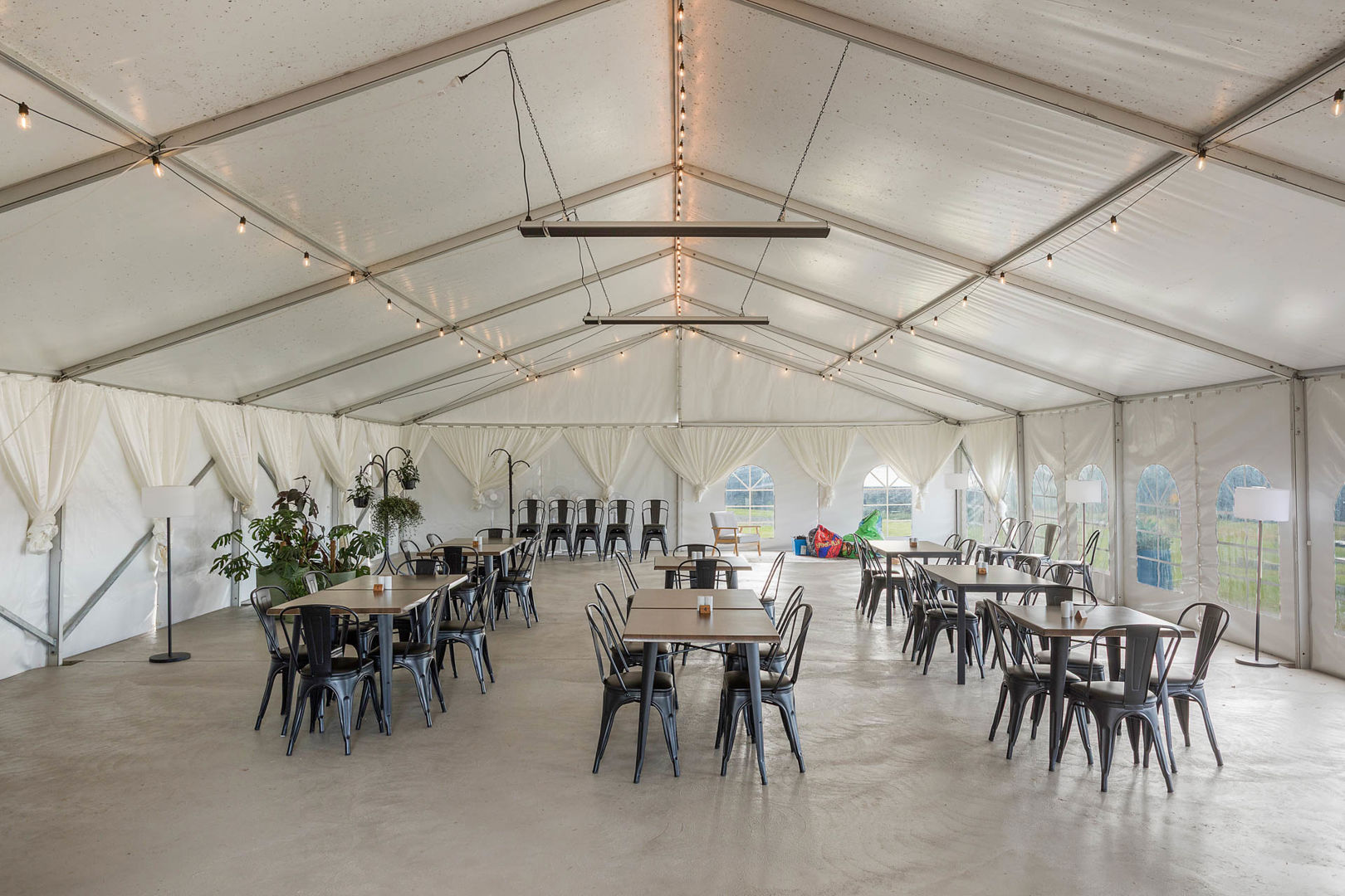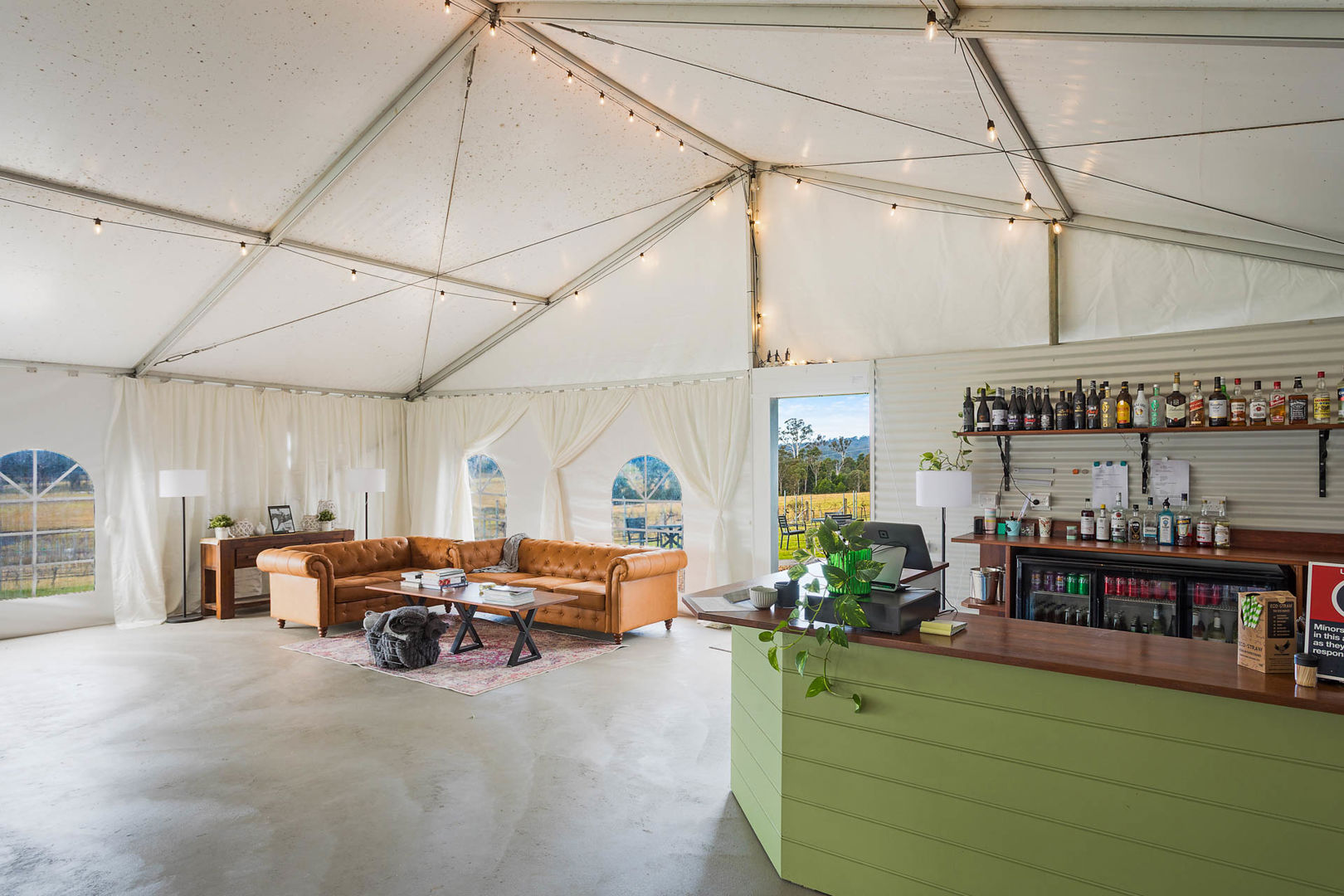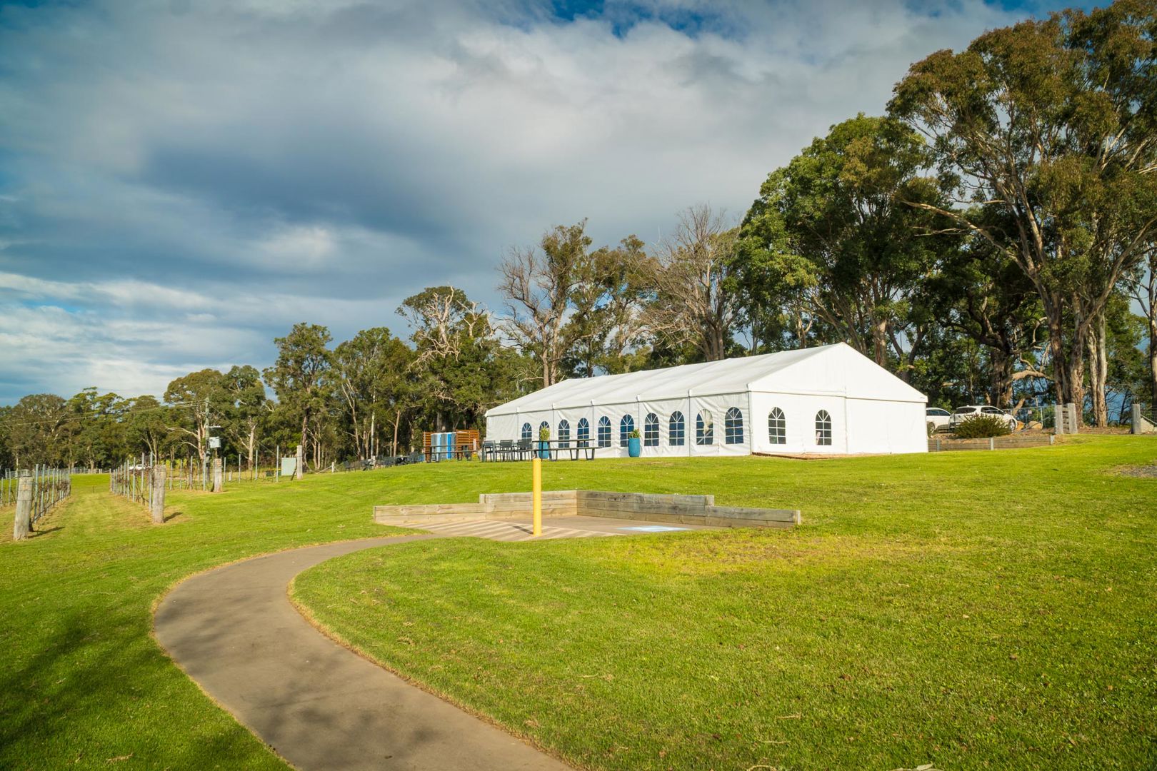 An expansive 210m² marquee is used for weddings, long lunches, and private events, with supporting infrastructure such as disabled parking and an ambulant-access WC already in place.