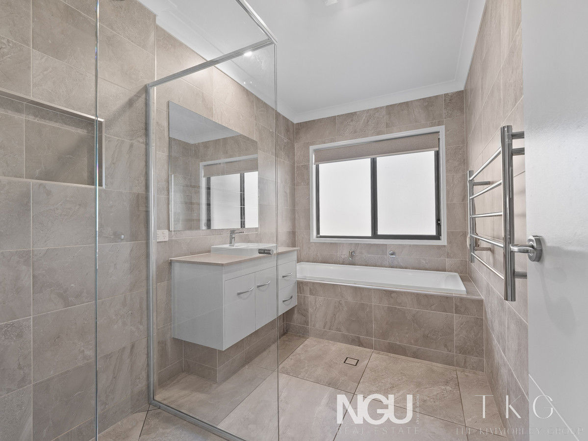 Designed with flexibility in mind, the home includes four large bedrooms, each with built-in robes and ducted air, plus a private master suite at the rear with walk-in robe and luxe ensuite featuring floor to ceiling tiles and heated towel rails. A generously sized home office near the front entry provides the ideal work from home setup, while a dedicated media room offers the perfect retreat for movie nights or weekend footy. Families will love the separate kids activity room, giving everyone space to spread out and enjoy their own slice of comfort.