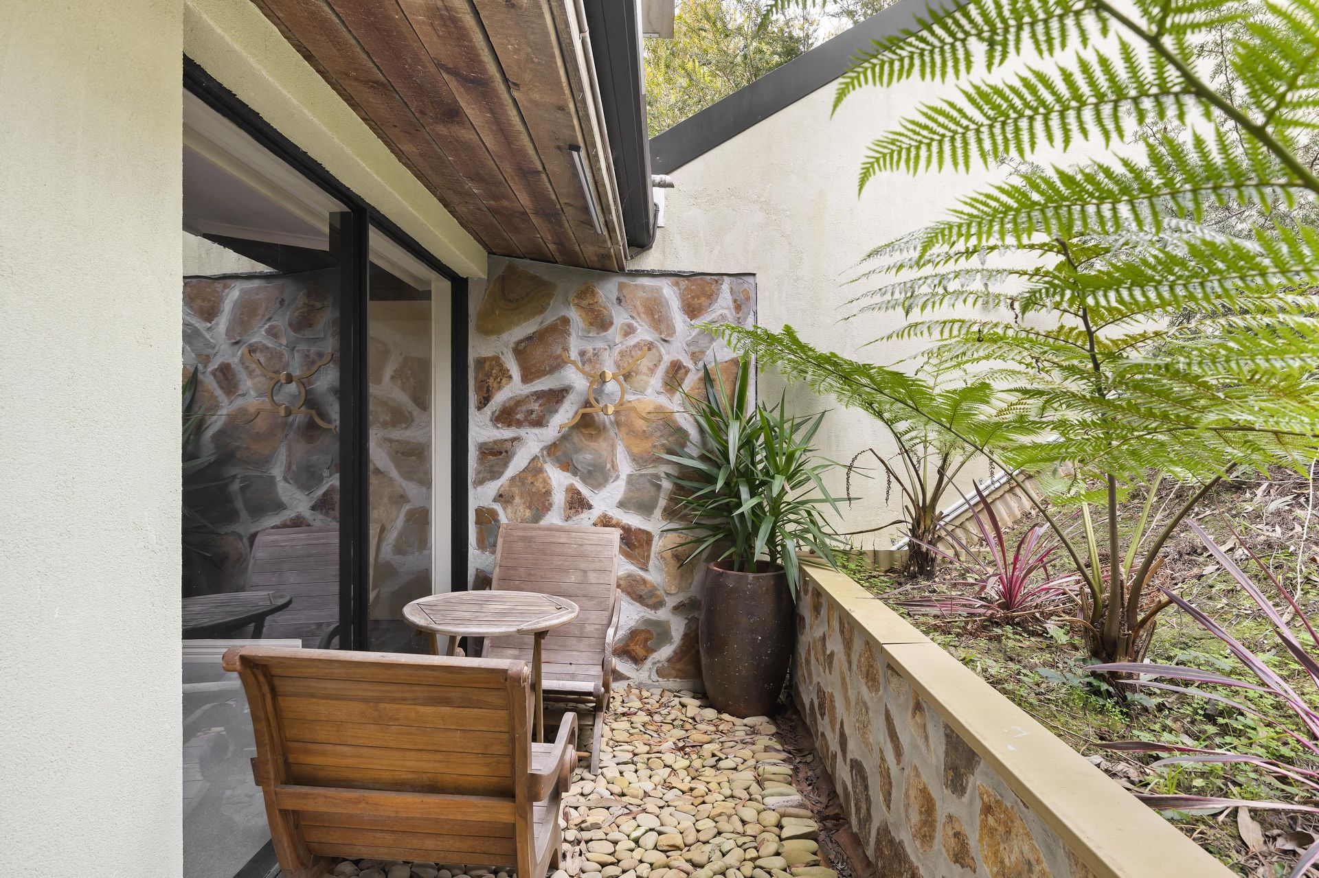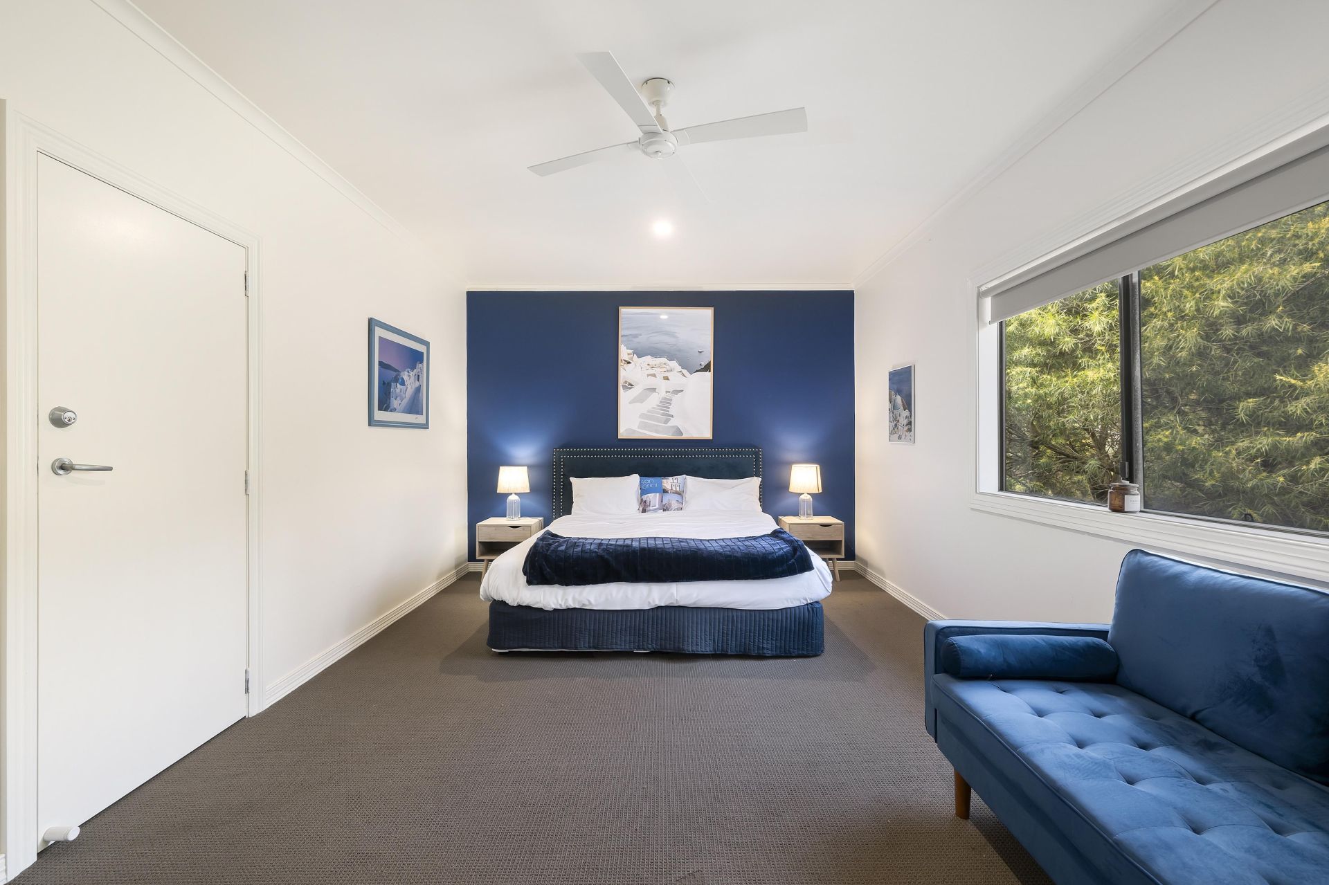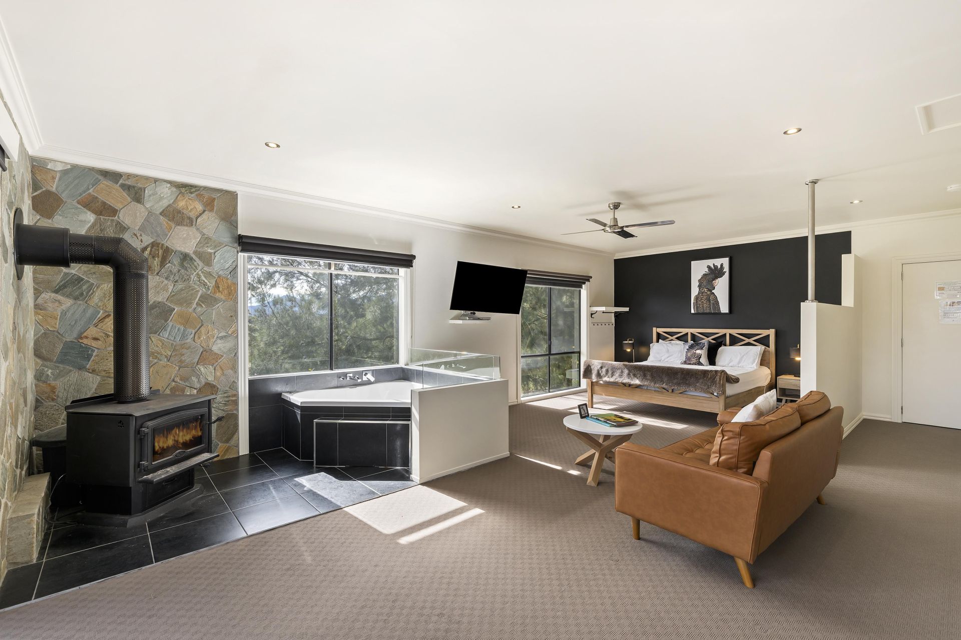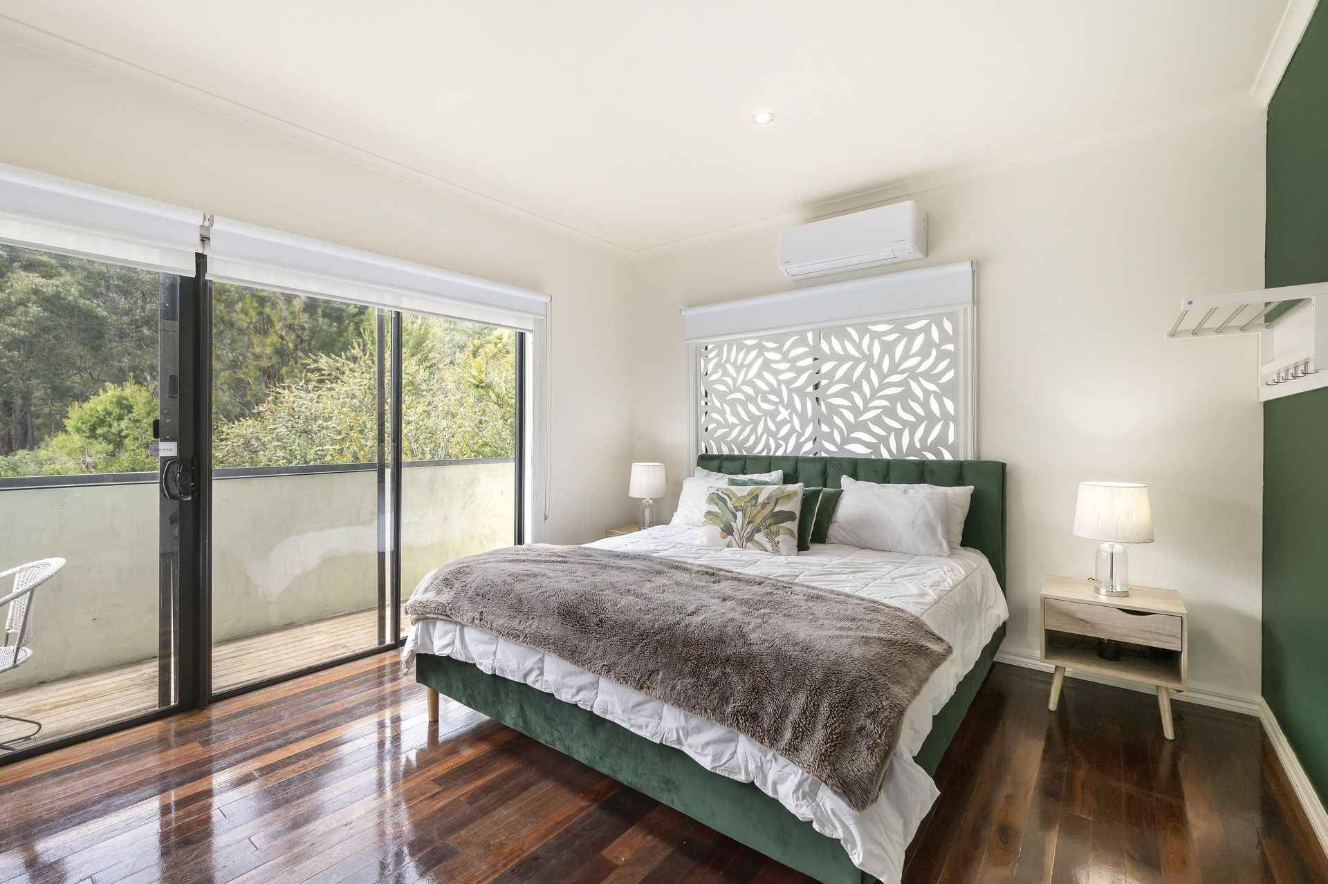 The north-facing home unfolds across two levels with double glazing and thoughtful thermal design. The main residence houses three bedrooms, while the other bedrooms/suites can be closed off when not in use, offering great flexibility around layout. Generous living areas feature cosy fires and two fully equipped kitchens, one with stone benchtops and premium appliances, and the other with a sleek modern layout. A collection of uniquely styled bedroom suites begins with the accessible villa, which features a forest-view spa bath and disability-friendly design. The other bedrooms /suites offer options for personalization, including balconies, spas, fireplaces, or kitchenettes, and enjoy views across the valley to mountains and the lights of Lilydale beyond. The second residence can be closed off from the main residence, meaning you have full privacy and total flexibility.