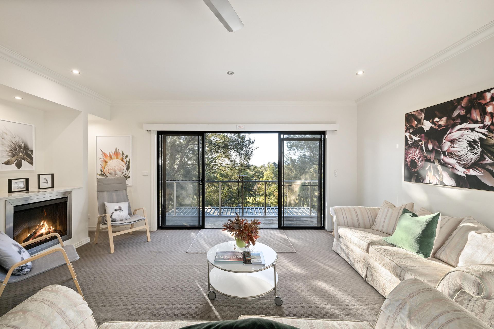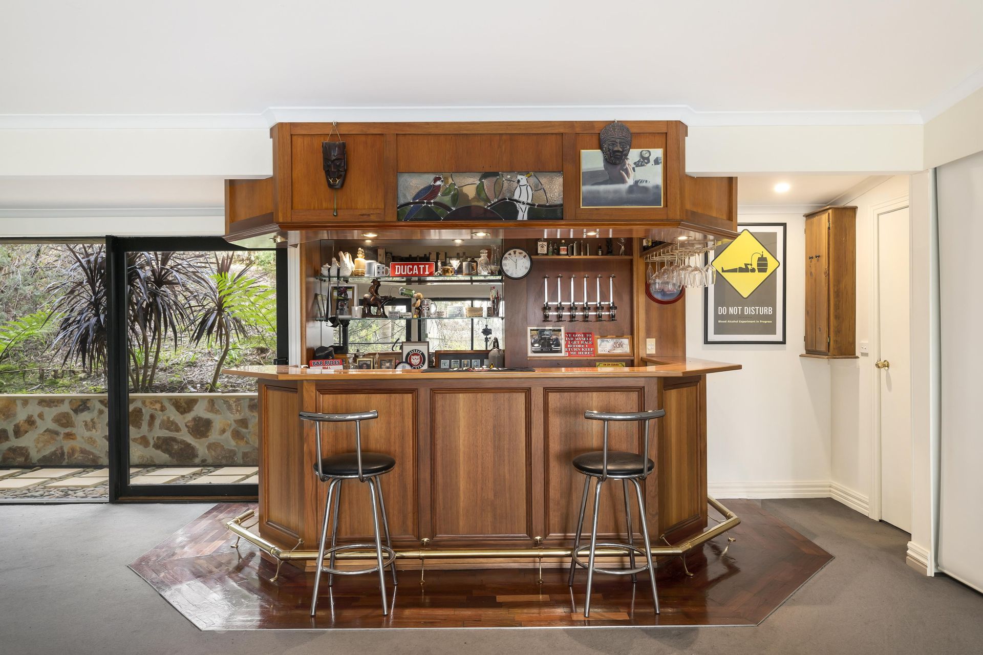 Entertaining takes centre stage in the first living space, which features a built-in bar and a hidden indoor swimming pool beneath the floor, while the second living room strikes a more formal tone with a statement fireplace. Downstairs living spills out to the vine-draped patio overlooking distant views, where days turn to nights by the open fire, a glass of red in hand, and the laughter of friends new and old warms the heart. Upstairs, a third living room offers guests a place to gather and take in the spectacular scenery from above.