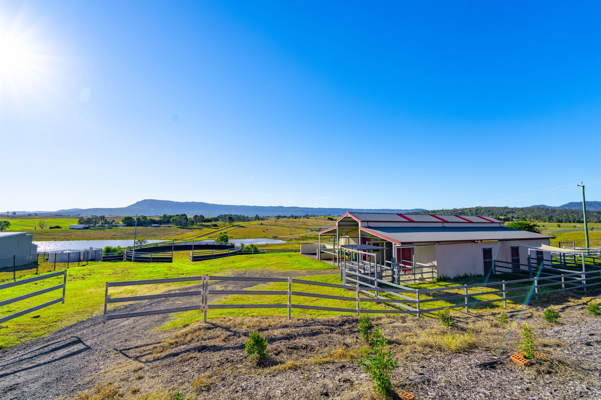 6 large stables (4.5m x 4.5m) with auto waterers and swing-out feed bins