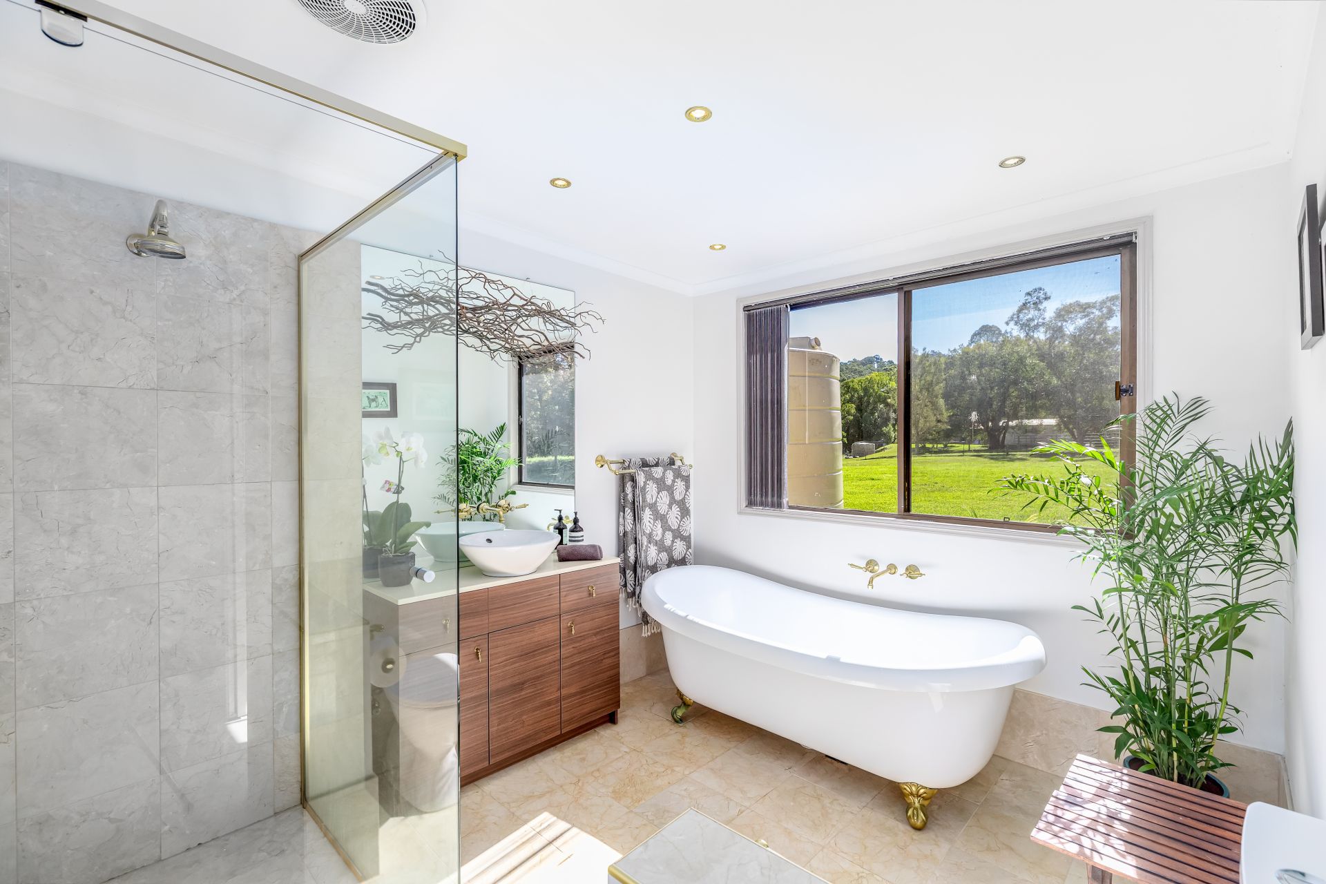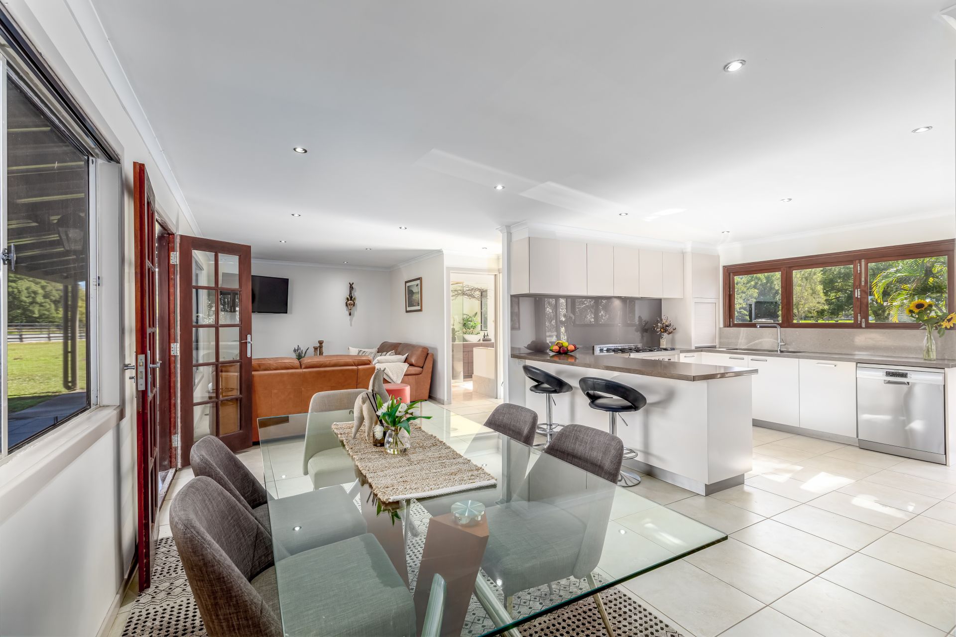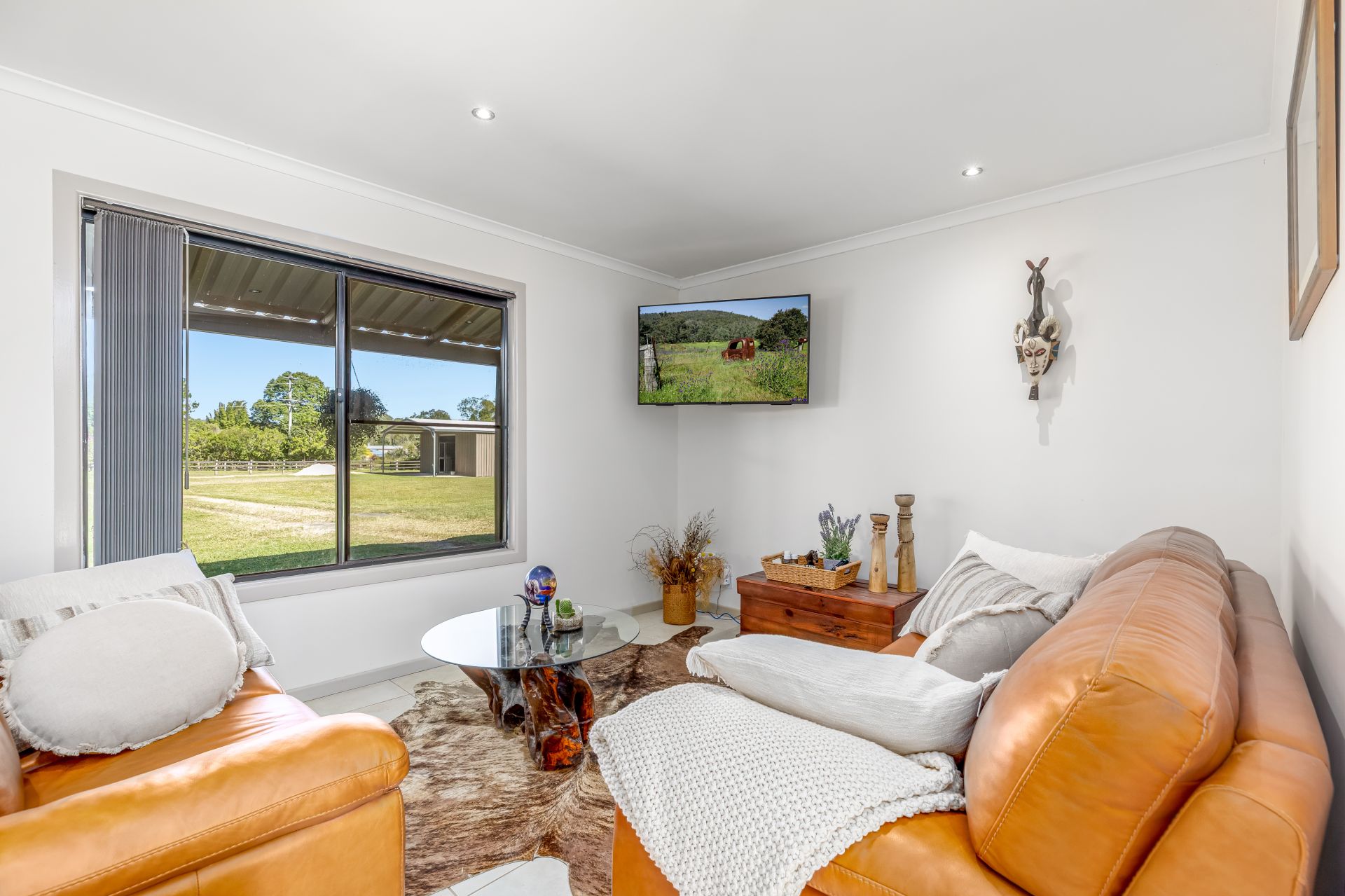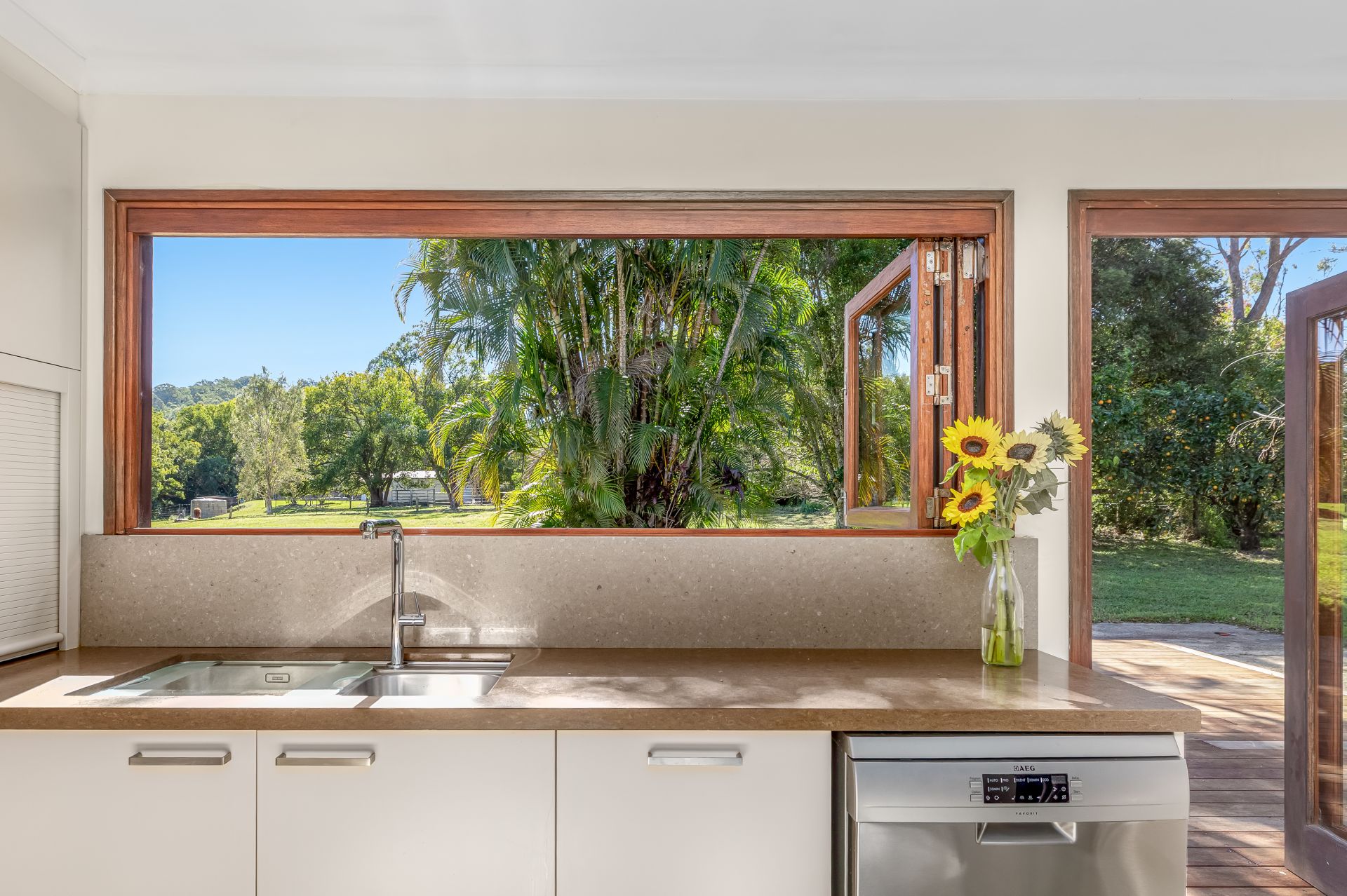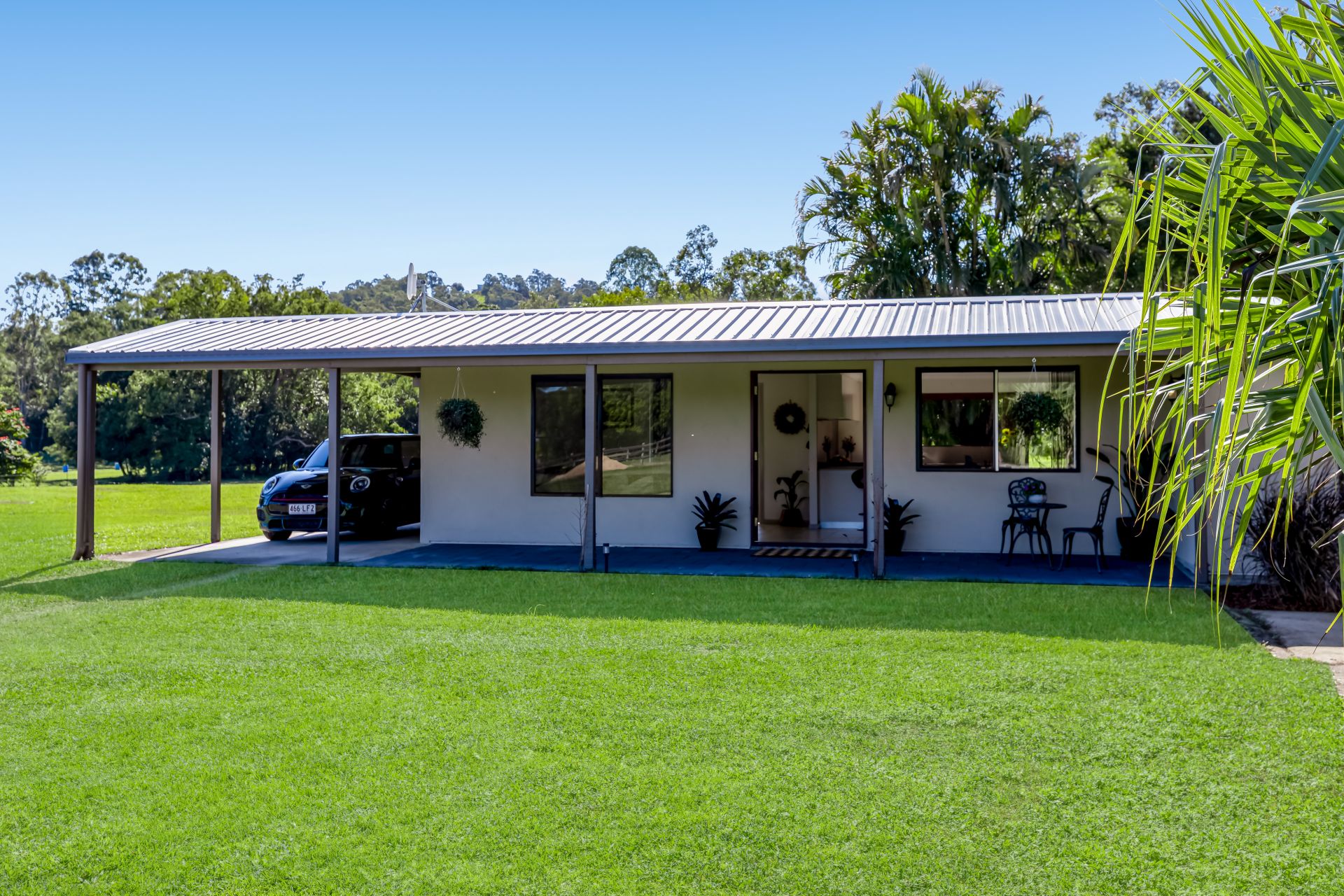 The solid block and rendered Farmhouse has been tastefully renovated throughout. It features a near-new Colourbond roof and guttering, as well as a new rear deck. The spacious, open-plan living, dining, and kitchen area is comfortable, offering several windows that provide views to gaze across the land and watch the horses frolic. The modern kitchen features stone benchtops, a 900mm combined gas stove top with an electric oven, a dishwasher, a double Frankie sink and ample cupboard and benchtop space. The laundry features a stone benchtop and splashback, as well as additional cupboard space and a deep sink, making it perfect for country life. Bifold kitchen windows and doors open onto a stunning, near-new 40m2 east-facing Merbau timber deck to soak in the fresh air and rural views of Mt Ninderry and beyond. The bedroom is spacious, featuring a built-in robe, and the modern bathroom boasts a freestanding clawfoot tub, Brazilian marble tiles, and a walk-in shower.
