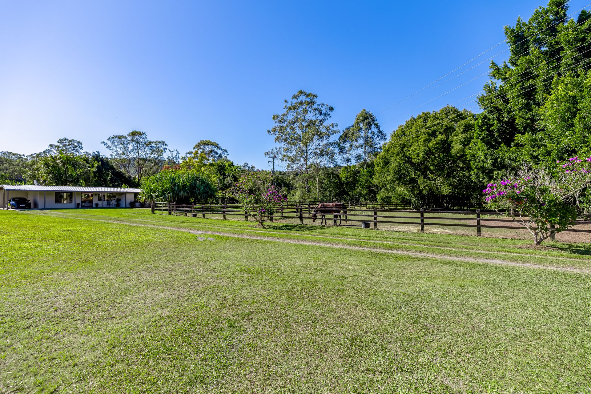 Entering along the stunning Tibouchina-lined driveway, you will be enchanted by this one-of-a-kind horse property. Rarely has there been such an opportunity to purchase a delightful acreage property with pristine, usable, flat, flood-free land in the heart of Ninderry, yet only 18 minutes to Coolum Beach.