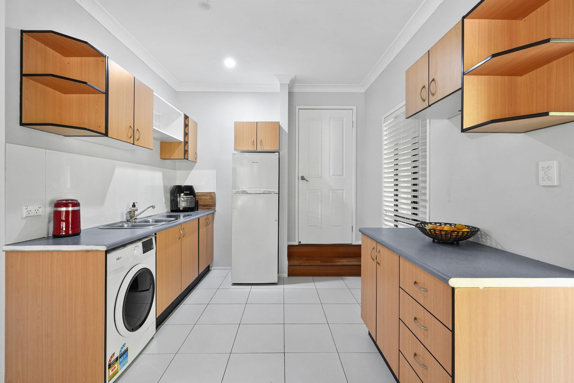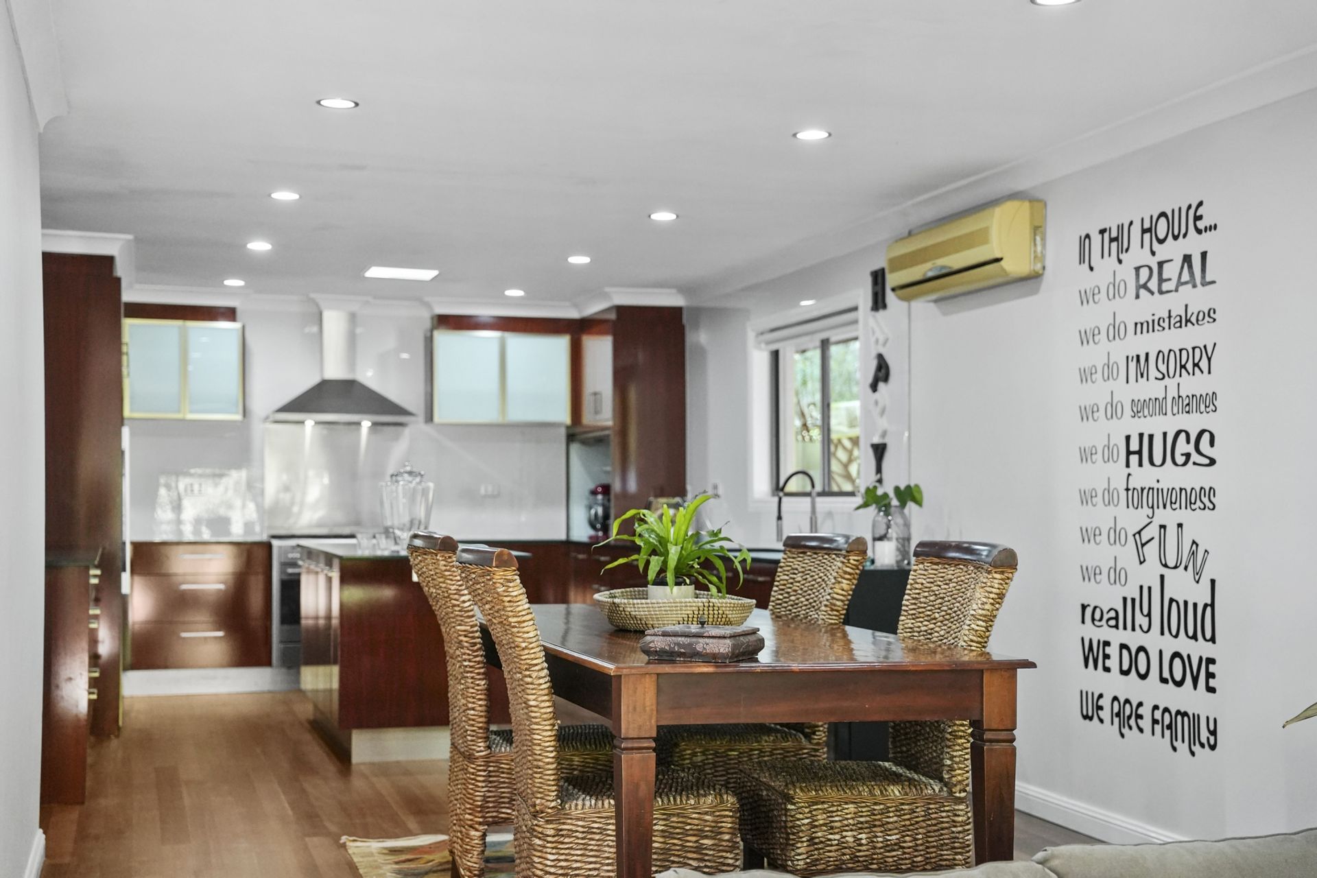 - Open-plan kitchen and living with indoor fireplace