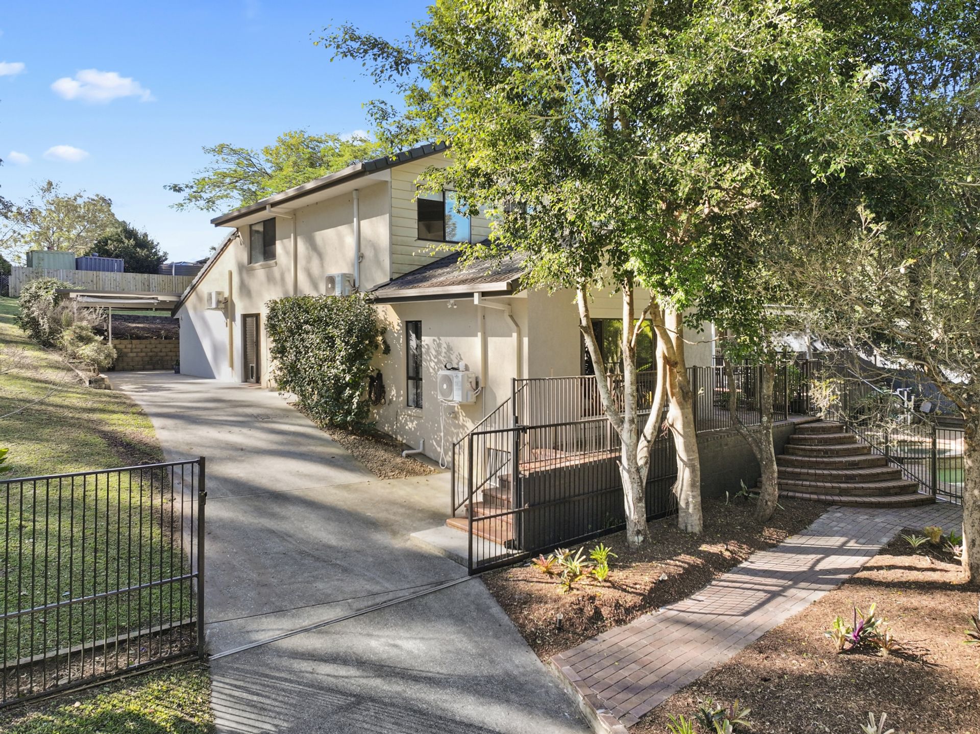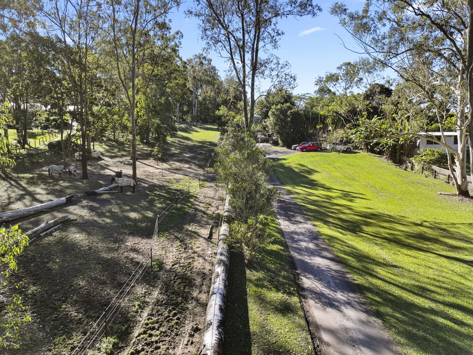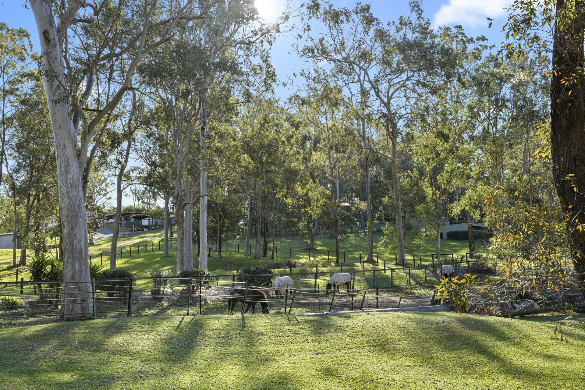 Set across two picturesque acres, the land is divided into approximately one acre of established gardens and another acre currently accommodating horses - perfect for equestrian enthusiasts seeking a manageable horse property in a prime Gold Coast Hinterland location.