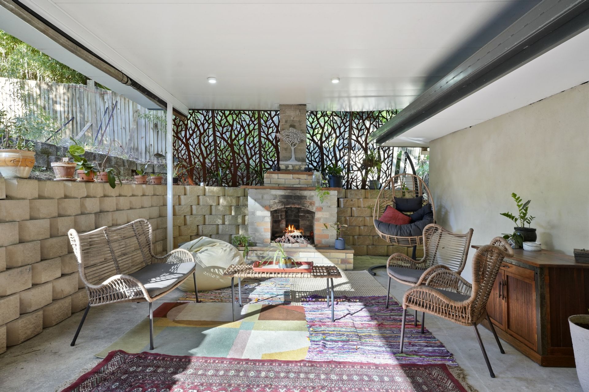 - Expansive outdoor entertaining area with open fireplace
