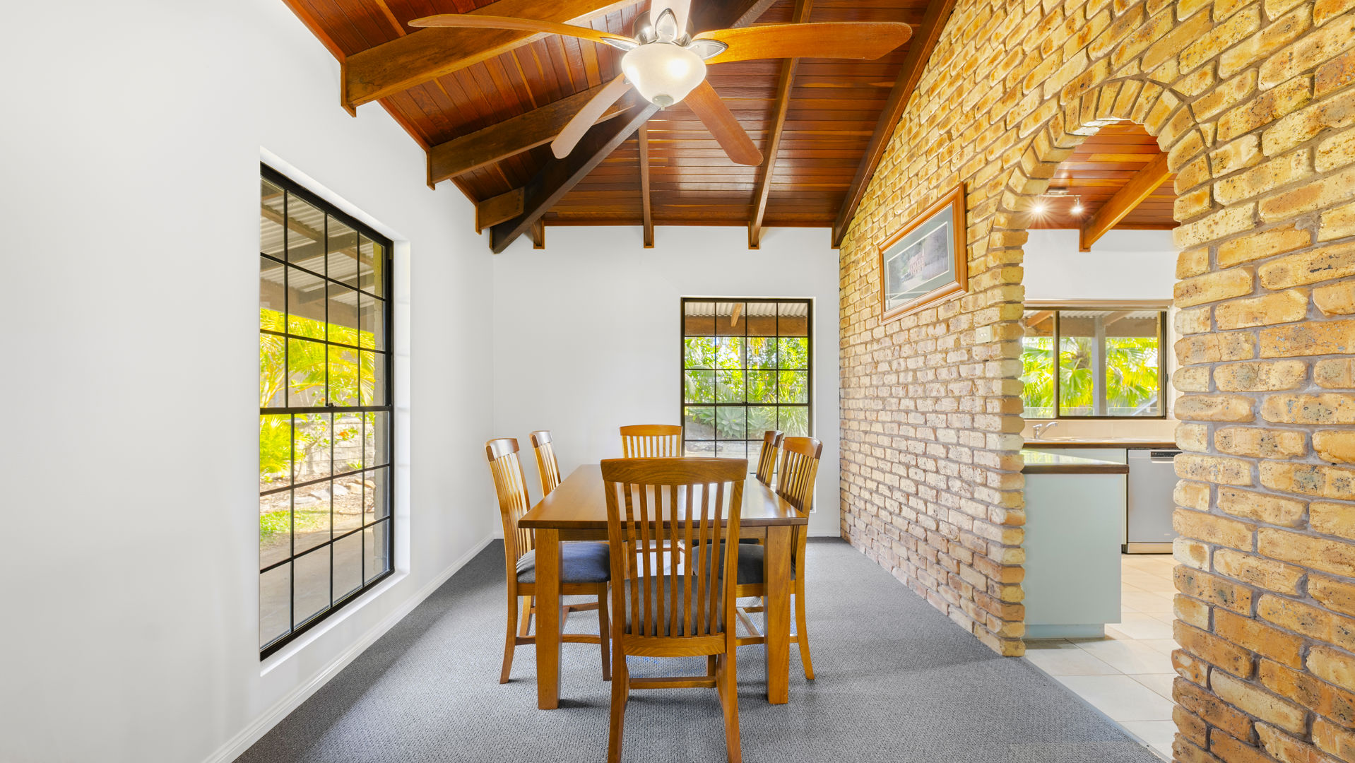 Inside, the home features an open-plan kitchen and dining room, seamlessly integrating with the formal living space and a second formal dining room, creating an ideal flow for entertaining. The property comprises three well-appointed bedrooms, including a master suite with an ensuite, and all bedrooms equipped with built-in robes for ample storage. Please refer to the floor-plan provided for an understanding of the layout.