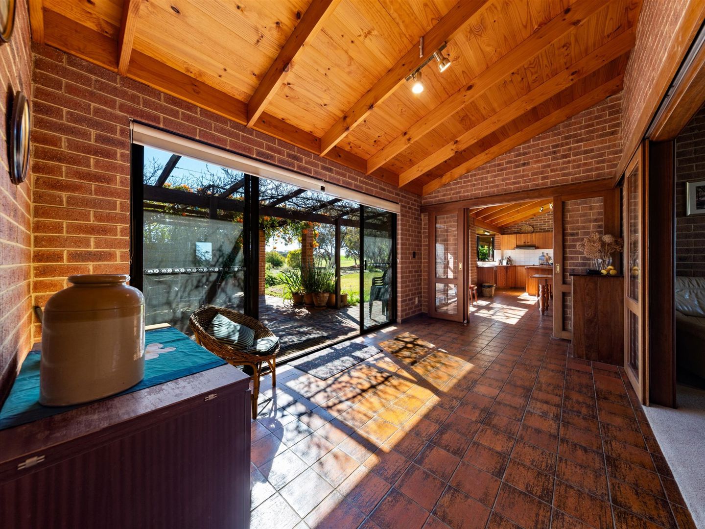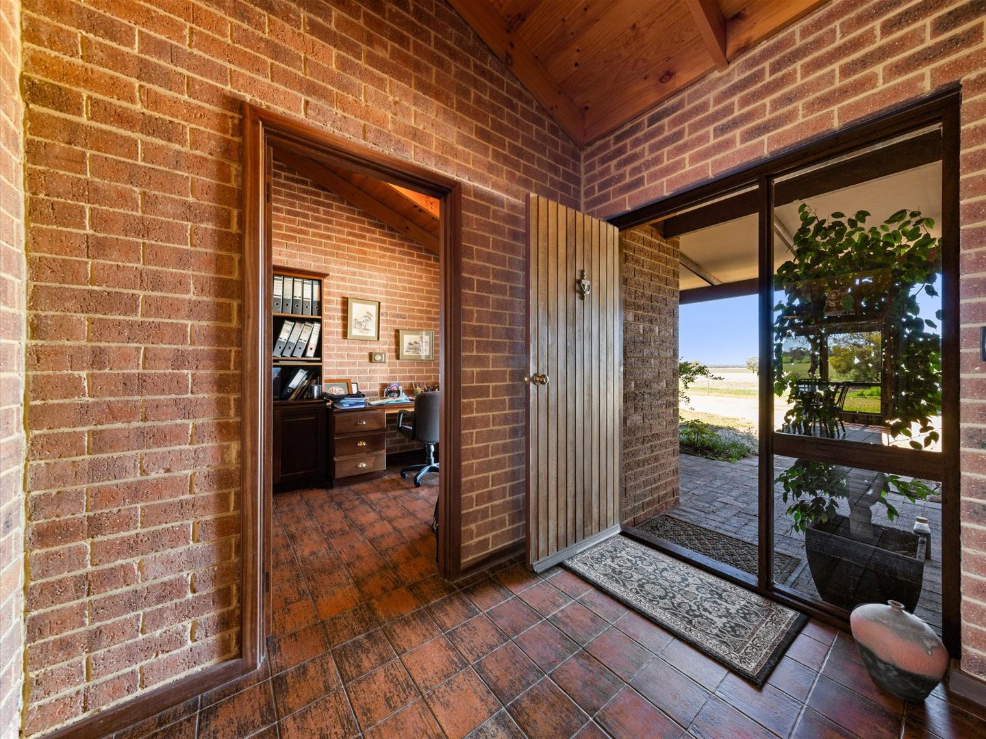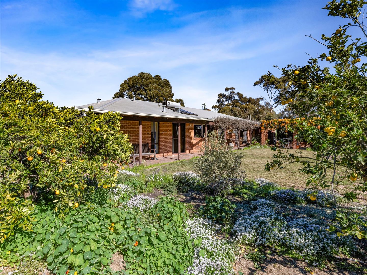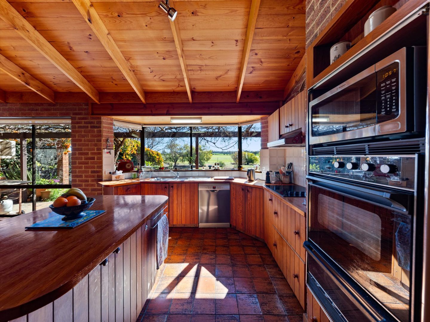 Located centrally is a three-bedroom, two bathroom, double brick homestead, set amongst natural timber and well-manicured, auto reticulated lawns and gardens which make it a wonderful family home. The owners built this 'solar passive' design home in 1985, orientated east-west to take full advantage of the sun's 'travel' in all seasons, with emphasis on energy efficiency and the comfort of the family living there. The home is airconditioned in the open plan kitchen and dining room, unique raked ceilings with exposed timber creating a spacious, open feel with a second living area, farm office, all bedrooms with built-in robes and the second bathroom is thoughtfully located to act as a 'mud room' for those that have been 'in the garden' or 'on the farm'. The outdoor entertaining area on the north side of the home boasts impressive views across the surrounding countryside, there is a two-bay garage on the west side plus undercover of the main roof another single bay garage with direct access to the home that could easily be converted to another bedroom or living area. The home is connected to the scheme water supply.