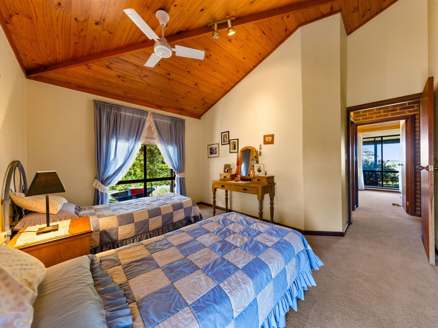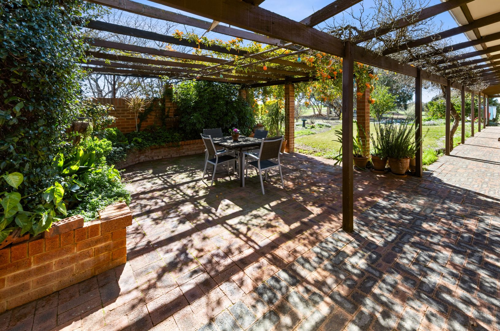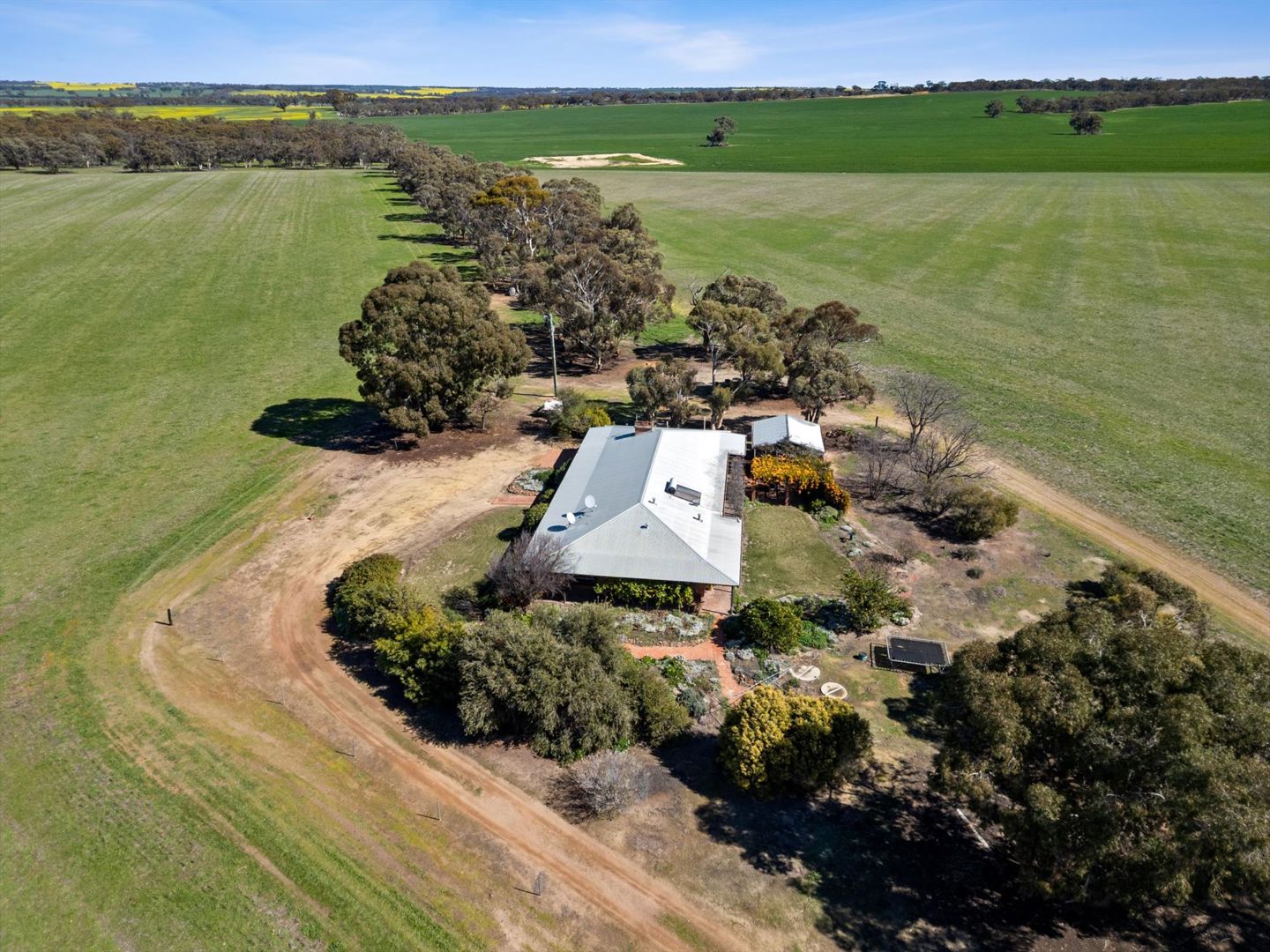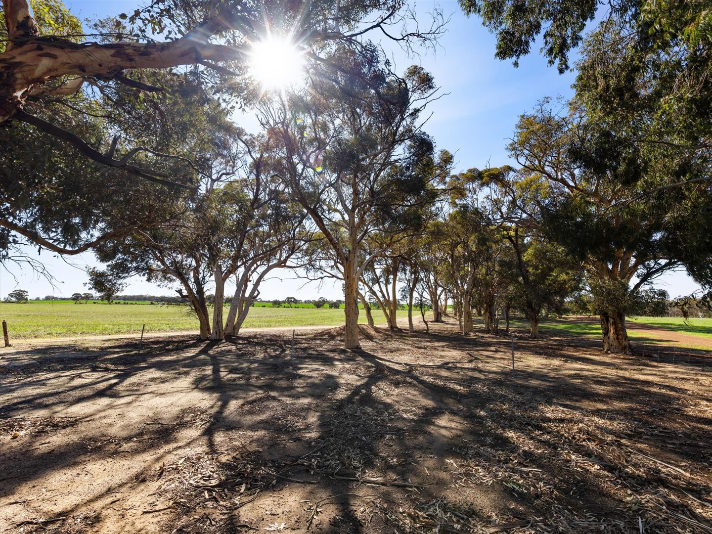 Located centrally is a three-bedroom, two bathroom, double brick homestead, set amongst natural timber and well-manicured, auto reticulated lawns and gardens which make it a wonderful family home. The owners built this 'solar passive' design home in 1985, orientated east-west to take full advantage of the sun's 'travel' in all seasons, with emphasis on energy efficiency and the comfort of the family living there. The home is airconditioned in the open plan kitchen and dining room, unique raked ceilings with exposed timber creating a spacious, open feel with a second living area, farm office, all bedrooms with built-in robes and the second bathroom is thoughtfully located to act as a 'mud room' for those that have been 'in the garden' or 'on the farm'. The outdoor entertaining area on the north side of the home boasts impressive views across the surrounding countryside, there is a two-bay garage on the west side plus undercover of the main roof another single bay garage with direct access to the home that could easily be converted to another bedroom or living area. The home is connected to the scheme water supply.