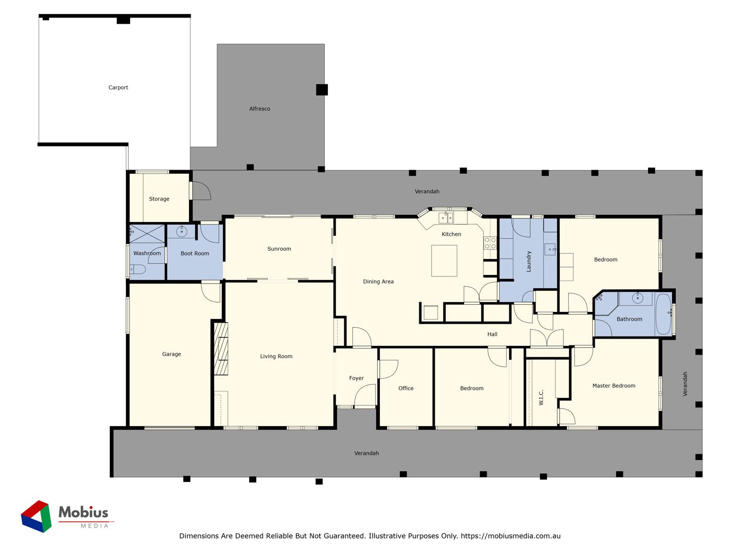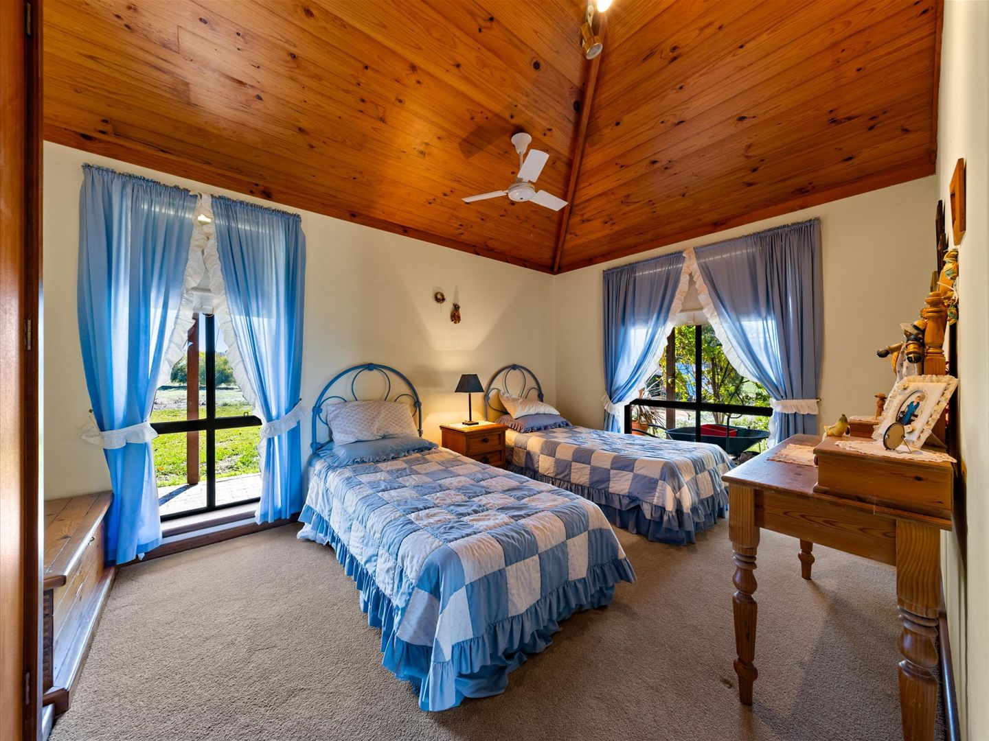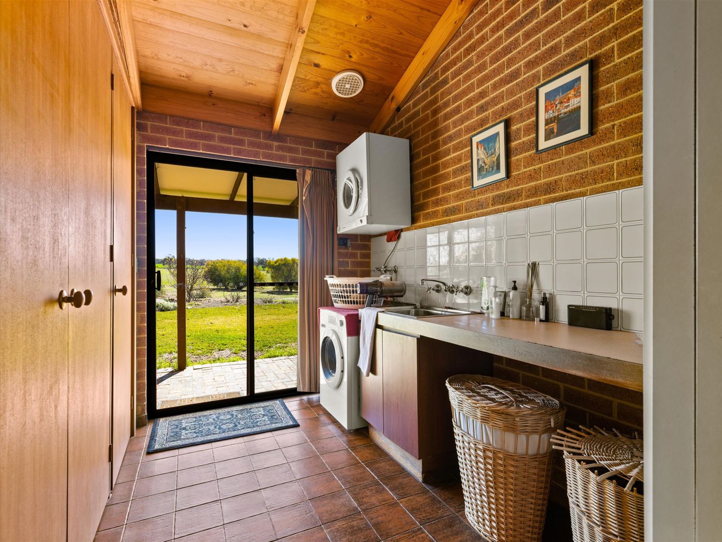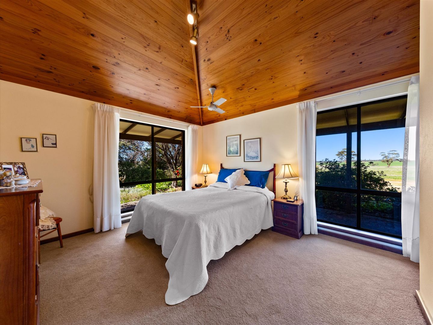 Located centrally is a three-bedroom, two bathroom, double brick homestead, set amongst natural timber and well-manicured, auto reticulated lawns and gardens which make it a wonderful family home. The owners built this 'solar passive' design home in 1985, orientated east-west to take full advantage of the sun's 'travel' in all seasons, with emphasis on energy efficiency and the comfort of the family living there. The home is airconditioned in the open plan kitchen and dining room, unique raked ceilings with exposed timber creating a spacious, open feel with a second living area, farm office, all bedrooms with built-in robes and the second bathroom is thoughtfully located to act as a 'mud room' for those that have been 'in the garden' or 'on the farm'. The outdoor entertaining area on the north side of the home boasts impressive views across the surrounding countryside, there is a two-bay garage on the west side plus undercover of the main roof another single bay garage with direct access to the home that could easily be converted to another bedroom or living area. The home is connected to the scheme water supply.