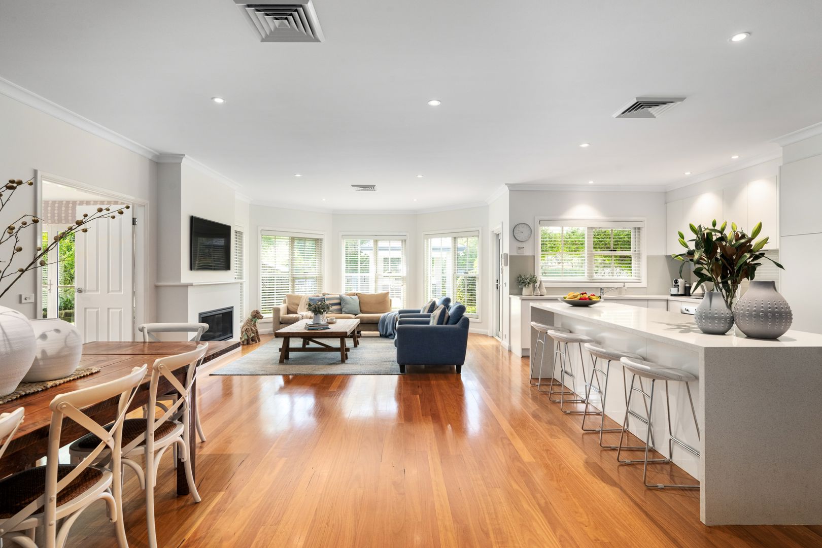 • Blackbutt flooring & timber-slat blinds, high ceilings