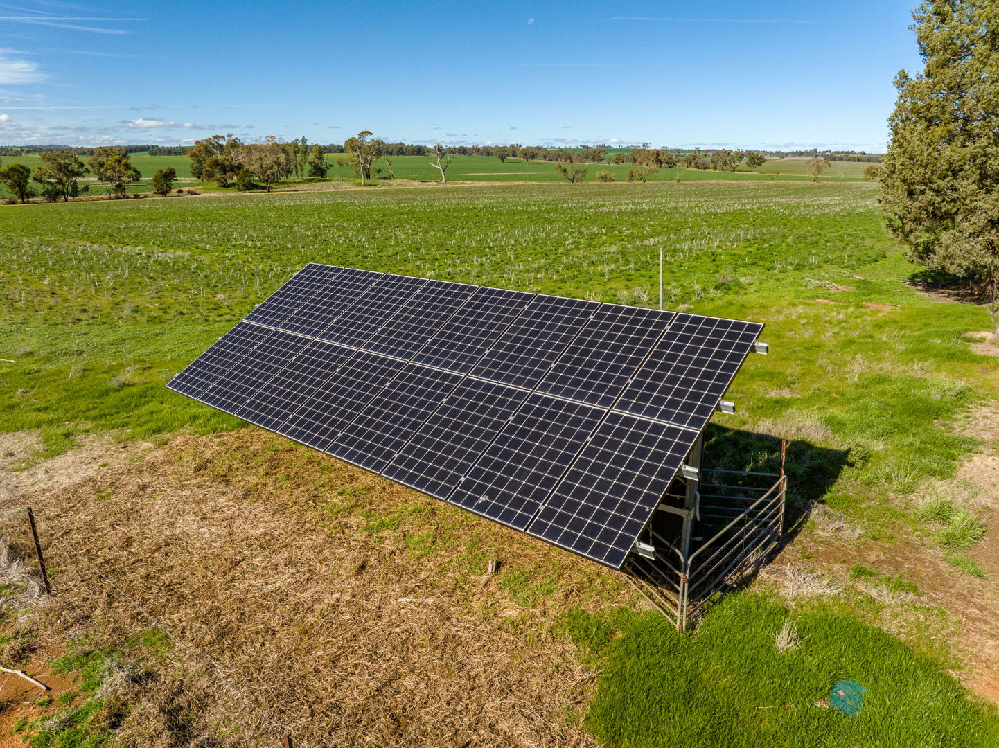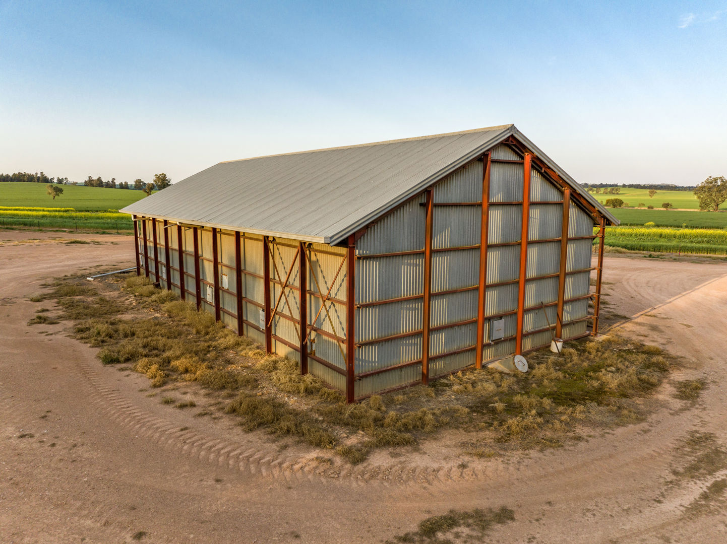 • ProWay steel sheep yards (undercover), large machinery shed/hay shed, 100,000L* water tank, town water, equipped electric bore with PVC casing, solar panel system, 250T* grain shed, work shop, oversized storage shed