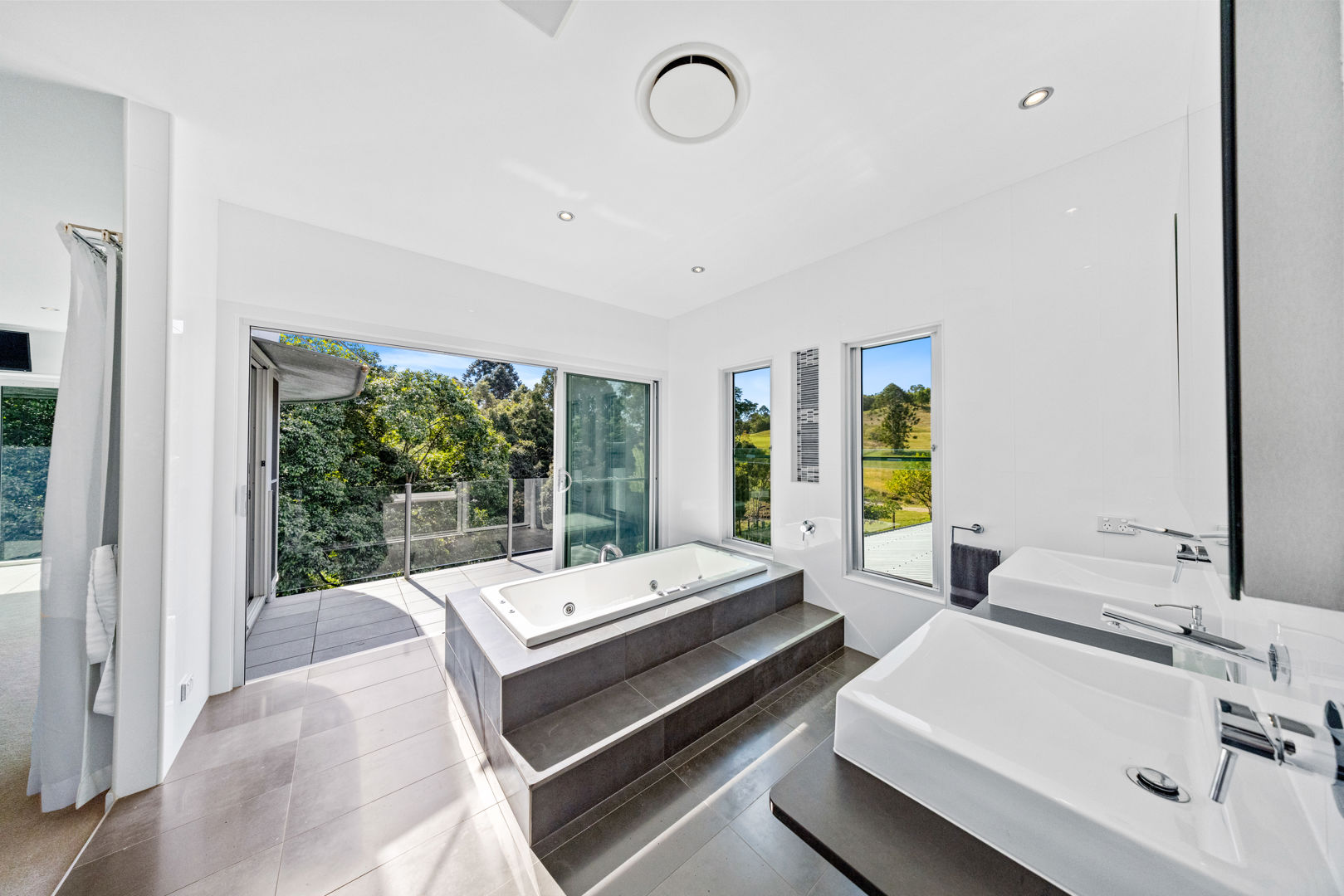 Set across 23.39 hectares of pristine, rainforest fringed countryside just two kilometres from the vibrant heart of Maleny, this is far more than a home. It is a living composition. Spring fed creeks meander through lush gullies, spilling into two private waterfalls, each with its own distinct rhythm. At the heart of it all lies a breathtaking thirty metre cascade, over which the main residence is dramatically poised. This rare feat of design allows the sound, movement and cool air of the falls to become a constant sensory backdrop to daily life.