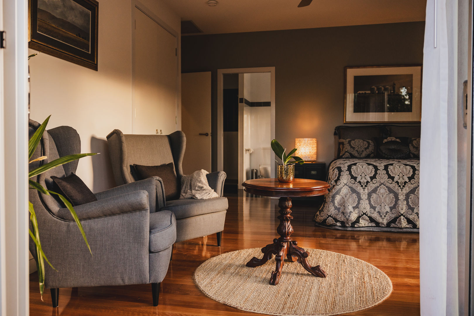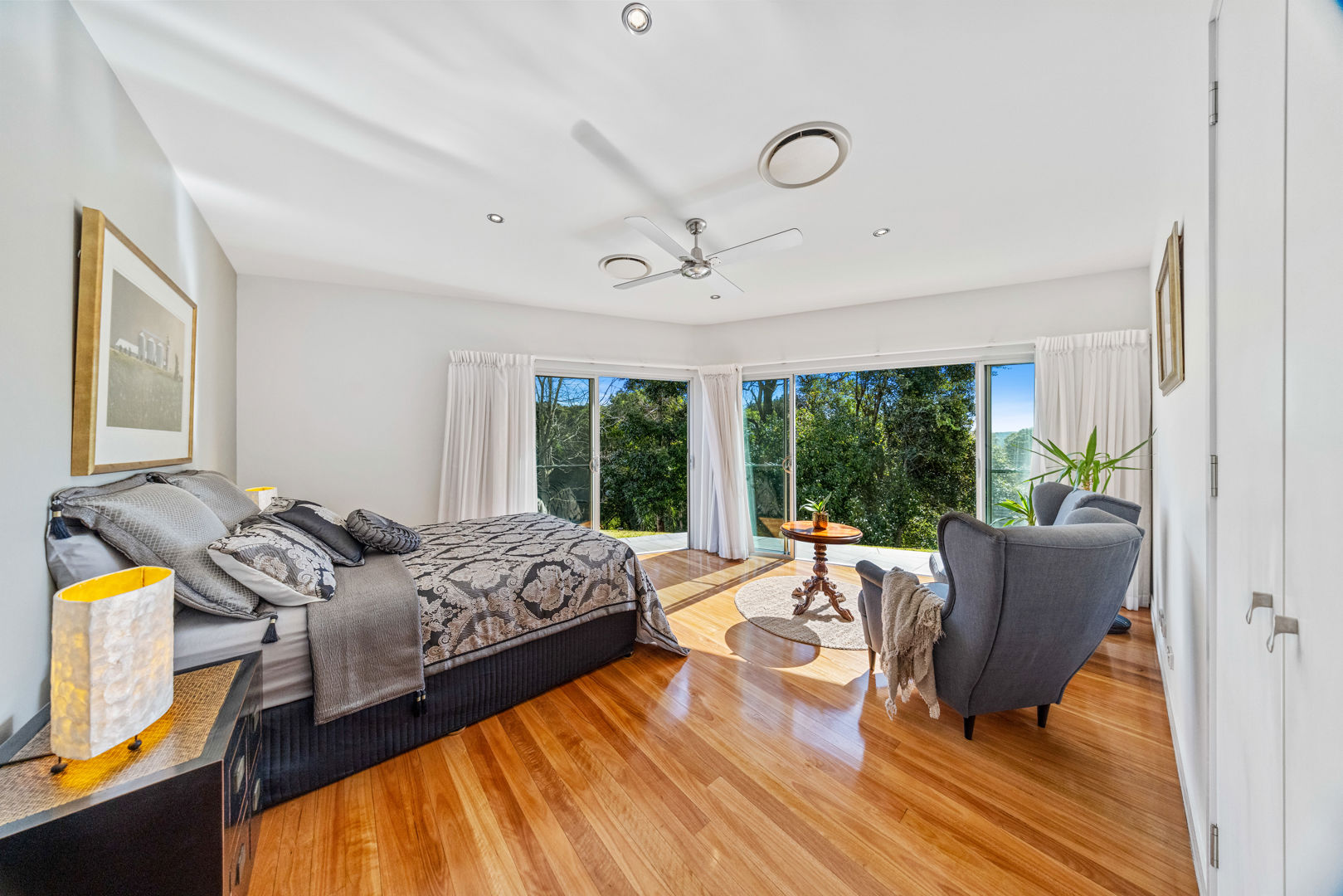 The grounds are an ever changing study in texture and form. Expansive lawns sweep towards rainforest edges. Elevated plateaus reveal distant ridgelines. Sheltered garden pockets invite quiet reflection, while a private network of trails leads to hidden gems including natural swimming holes, shaded rock pools and waterfalls revealed in shifting light. Whether walking at dawn among the misted paddocks or pausing at the main deck above the great falls, every turn offers a moment to savour.