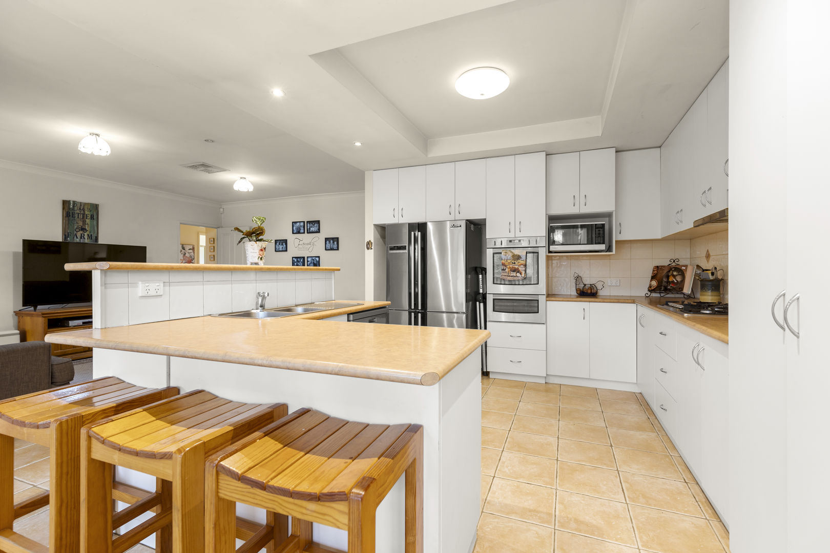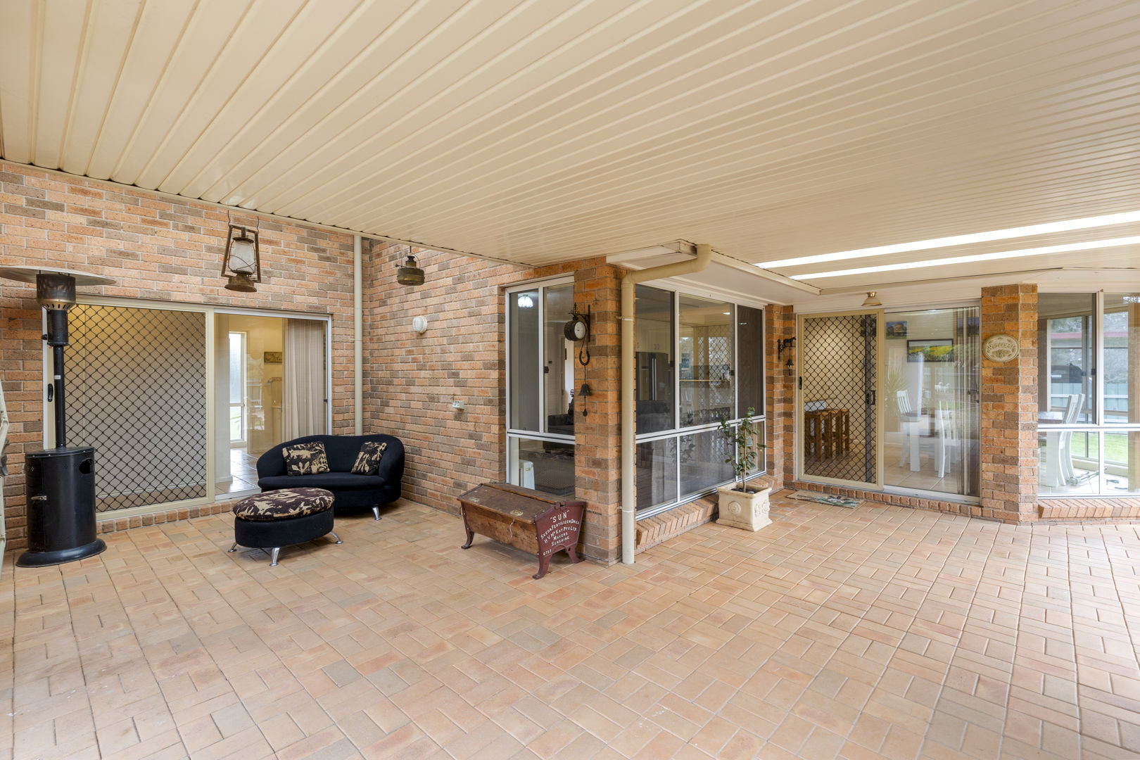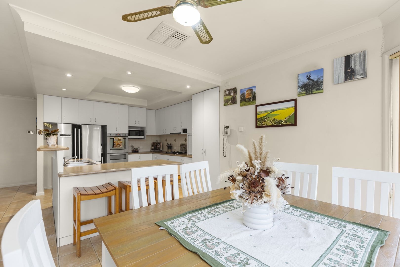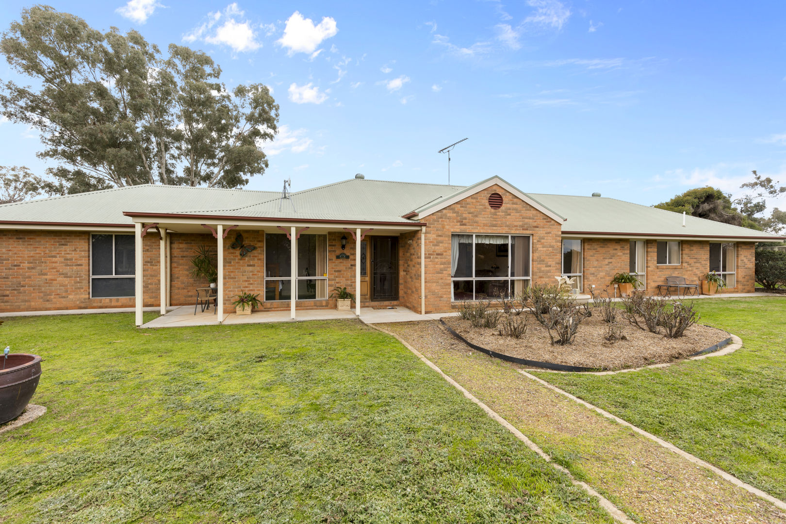 Esthervale features a large brick home with five bedrooms and three bathrooms, The home has two separate living areas and a contemporary kitchen that overlooks the dining space. The flooring throughout the main living areas is tiled, while the bedrooms are carpeted for comfort. The home is equipped with gas heating for warmth in winter and evaporative cooling for the summer months, and all five bedrooms come with built-in wardrobes.