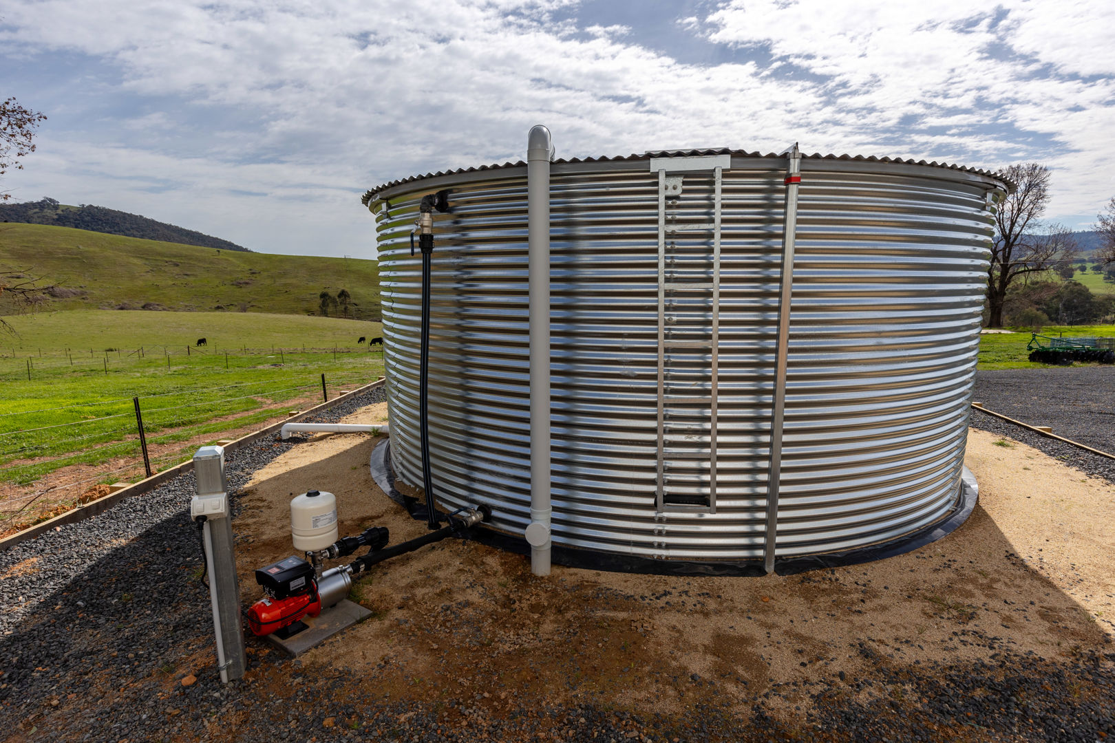 • Large Shed: Features LED lights, external sensor lights, 3 security cameras, flyscreen's, an electric roller door, 4 x 4-tier racking shelves, a steel cabinet, and miscellaneous farming equipment/tools. Serviced by a 46,000-liter galvanized water tank running through an orange variable pressure pump ORQMP 1100VFB.