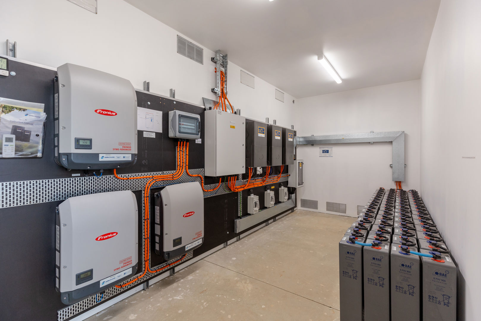 • Premium off-grid power system: A comprehensive 35kW off-grid solar system installed by Living Power, comprising 80 x 435 solar modules, 3 x Fronius 10kW SCert Symo Advanced Inverters, 3 x Selectronic SPPRO 1201 Inverters (7.5kW each), and 60 x BAE PVV900 batteries. The system includes all racking, cabling, electrical components, a plant room with A/C and filtered air intake, and is connected to a Yanmar 37kW 3-phase generator for backup, all monitored through a select live APP along with the installer.