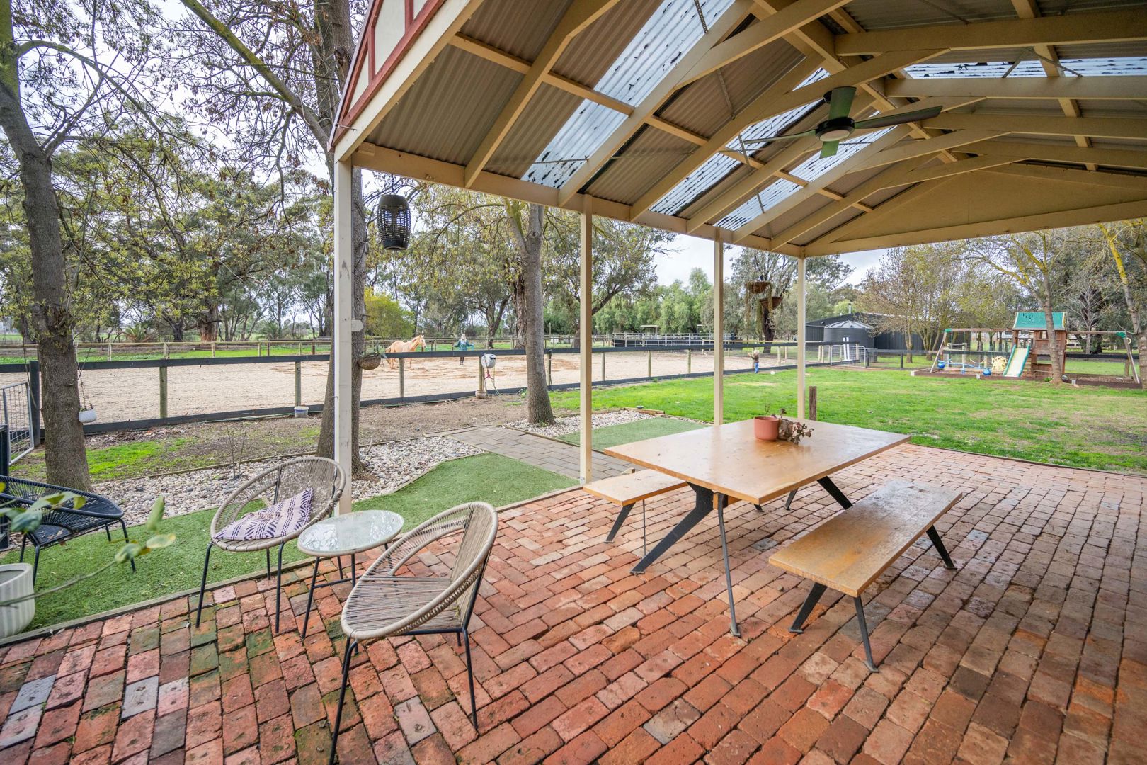 For horse enthusiasts, the property is fully equipped with excellent equine fencing, a full-size sand arena, round yard and three-day yards, horse pond and wash pad. Additional infrastructure includes a powered 3-bay lockable shed with a tack room,