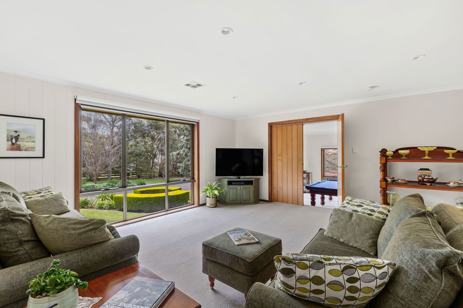 Secondary Living: Carpet, large window with roller blind and garden aspects, double doors linking with the rumpus room, and direct master bedroom access. .