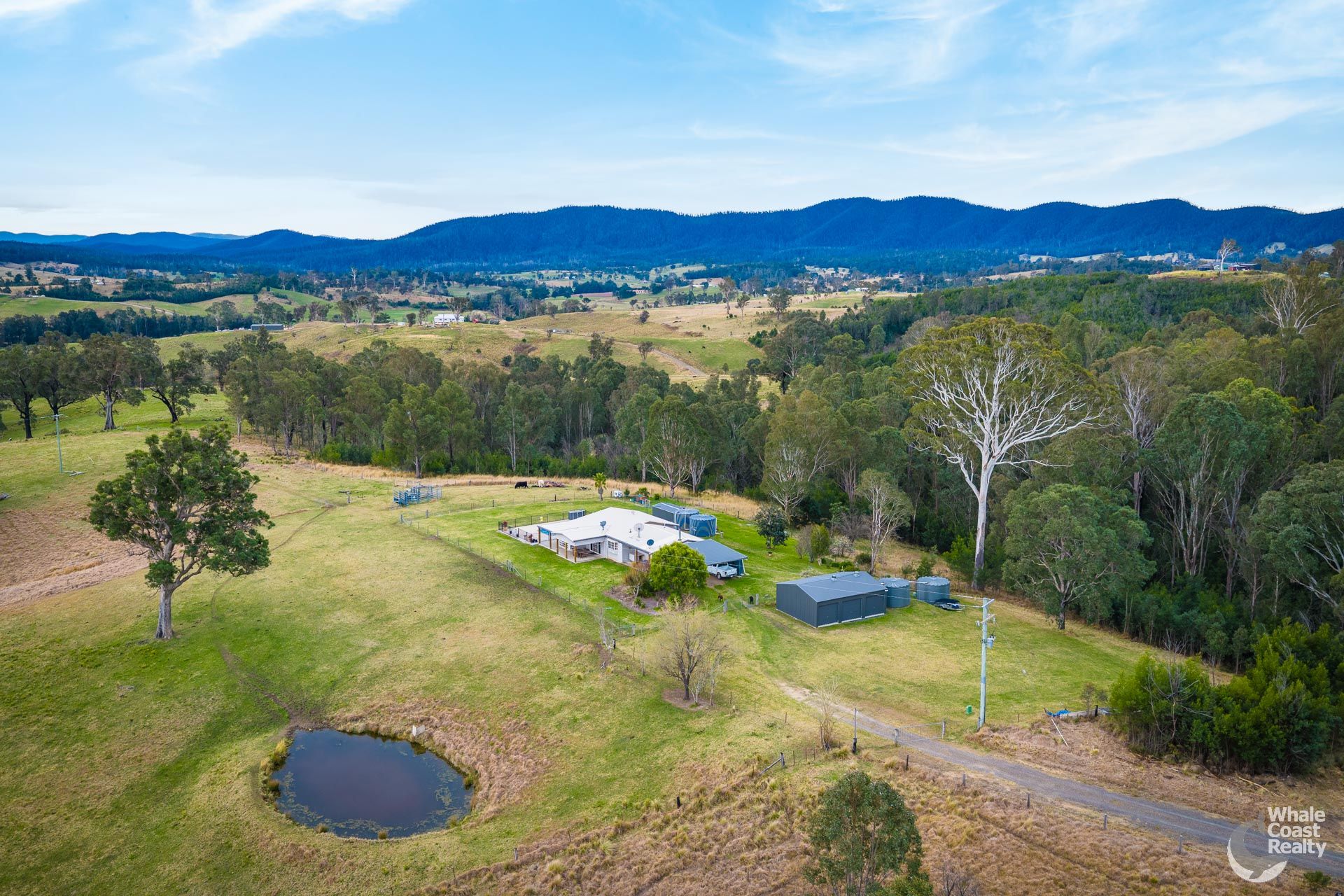 Set on 5.67 hectares (approximately 14acres) in the serene Wandella Valley, this stunning property offers the perfect balance of modern comfort and country lifestyle, complete with lovely mountain views.