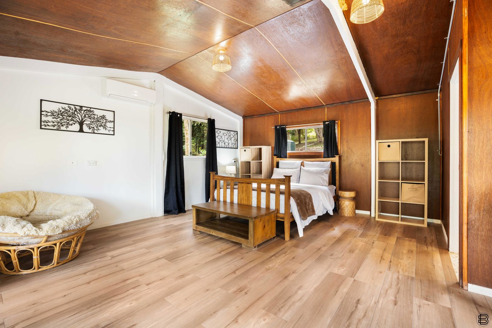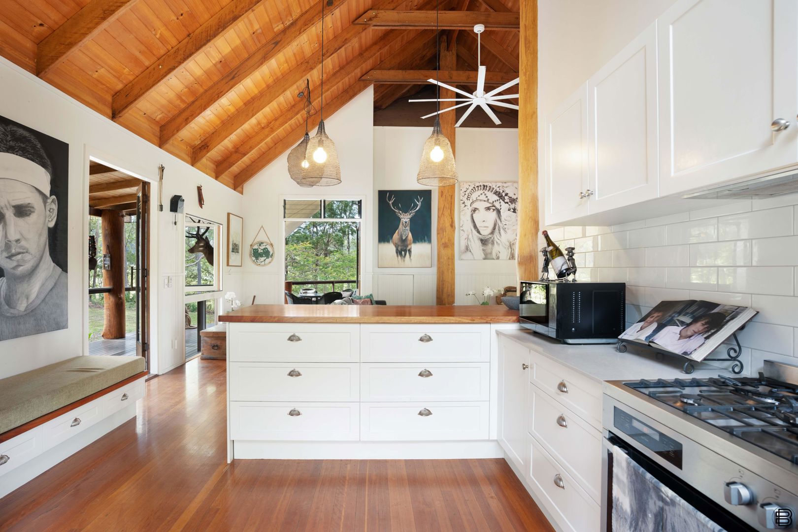 - 751m² home built with hand-hewn timber and cathedral ceilings
