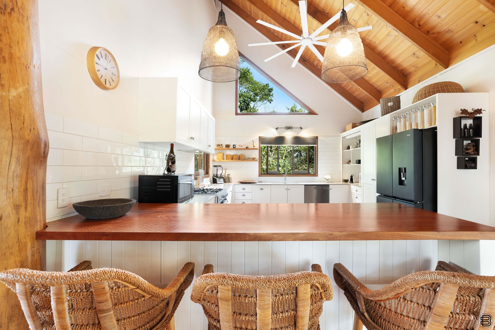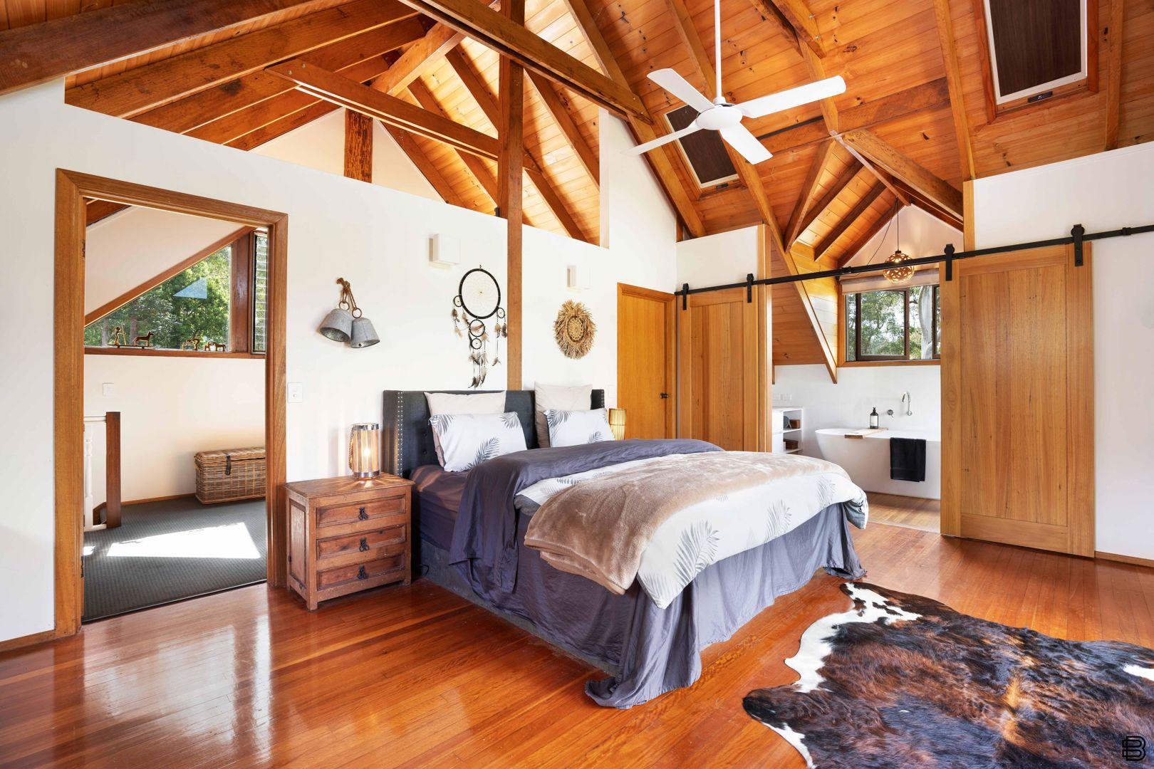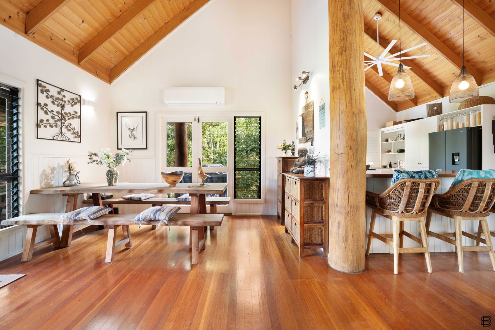 Welcome to 300 Seib Road, Eumundi, a rare fusion of sea change and tree change, where nature, lifestyle, and architectural brilliance converge. Just 20 minutes from Noosa Main Beach and a scenic walk to the vibrant market town of Eumundi, this extraordinary estate offers a sanctuary for families seeking space, serenity, and sophistication. Nestled at the end of a lush, meandering road, the property opens to verdant paddocks, a tranquil dam, and panoramic views of Mt Cooroy and the surrounding Verrierdale Forest. Built in 1996 by a local craftsman, the residence is a masterclass in rustic elegance, featuring hand-hewn timber, cathedral ceilings, and polished spotted gum floors. The home's expansive layout includes multiple living zones, a wood-burning fireplace, and a country-style kitchen equipped for gourmet pursuits. Outside, the resort-style pool, orchard, and gardens create a haven for relaxation and self-sufficiency. With six bedrooms, including a self-contained studio, and a versatile barn, the estate is ideal for multi-generational living, creative ventures, or equestrian pursuits. Whether you're drawn to the many beaches on offer or the natural beauty of Noosa's hinterland, this property delivers the ultimate lifestyle balance - privacy, luxury, and proximity to everything that matters.