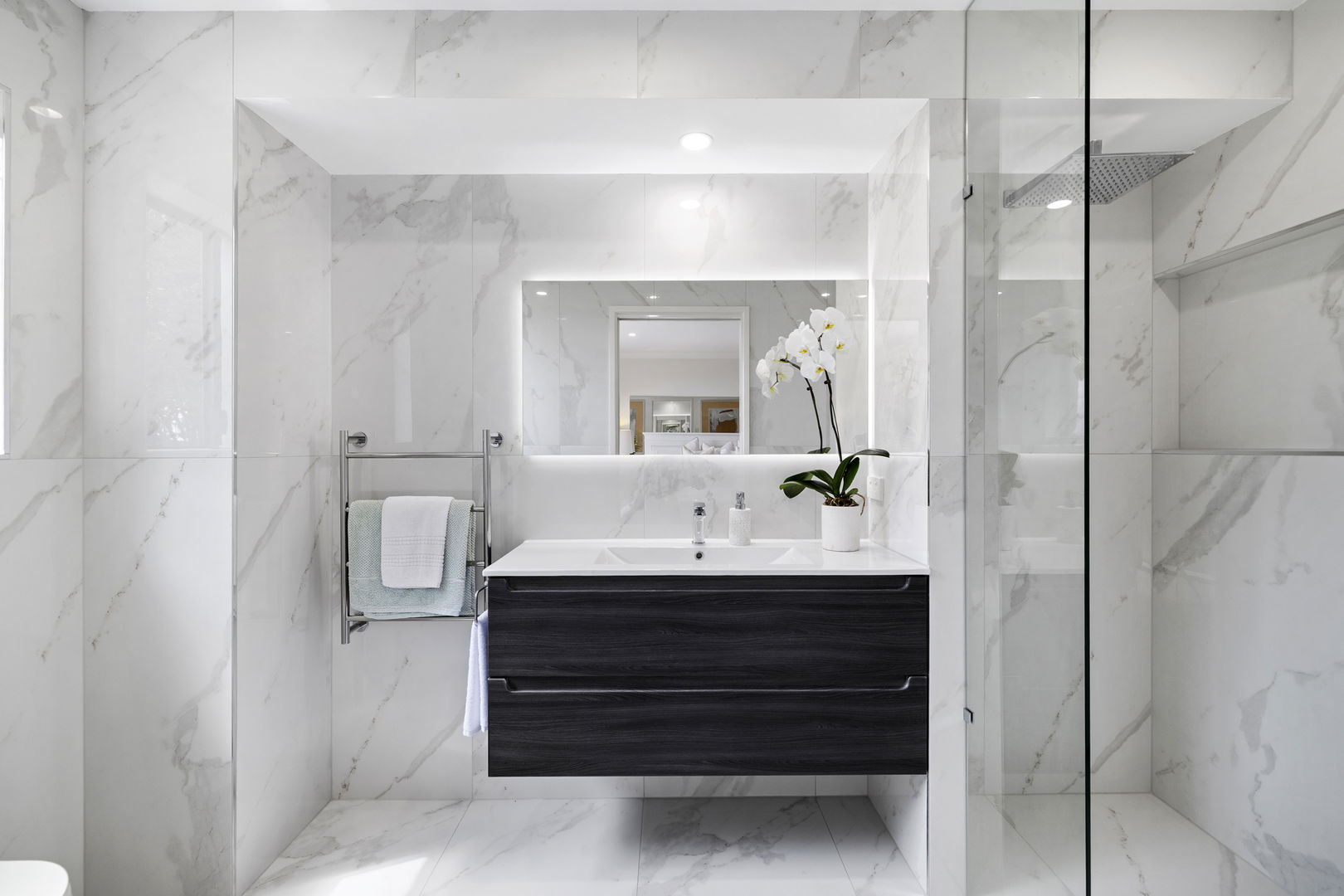 The master bedroom and spacious study are ideally located on a far side of the upper level. The master is a dreamy retreat with plush carpets, private balcony million dollar views and a chic walk-in wardrobe. The luxury designer ensuite is simply WOW with floor to ceiling format tiles, opulent double shower, bath and striking stone basins. On the other side of the residence is the luxe laundry and two spacious bedrooms, both with ensuites, built-ins and verandah access.