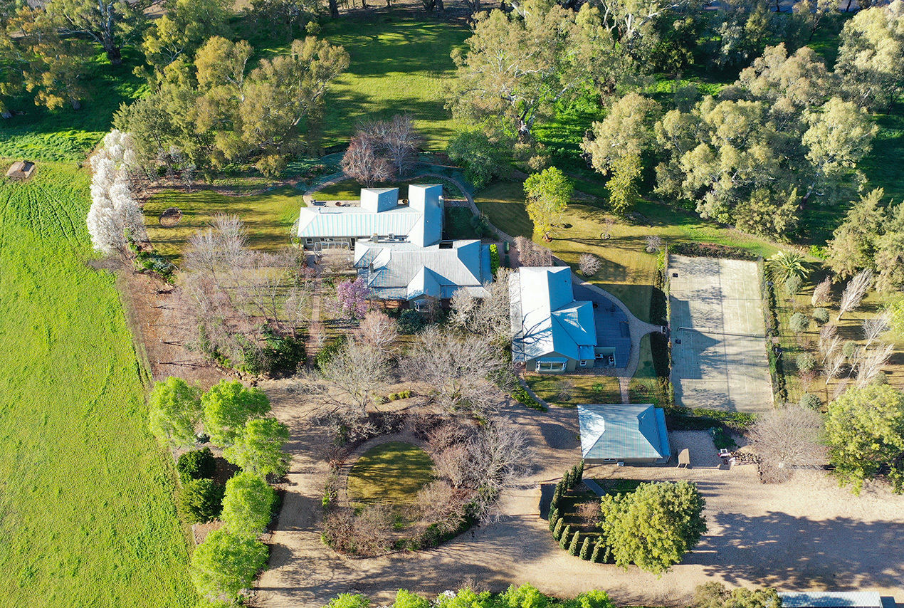 Sandridge Homestead - A private tree lined driveway opens to beautiful mature gardens, featuring huge river red gums, maples, polars, birch and other native and exotic trees. The homesteads orientation takes full advantage of its elevation and aspect overlooking the river and nature.