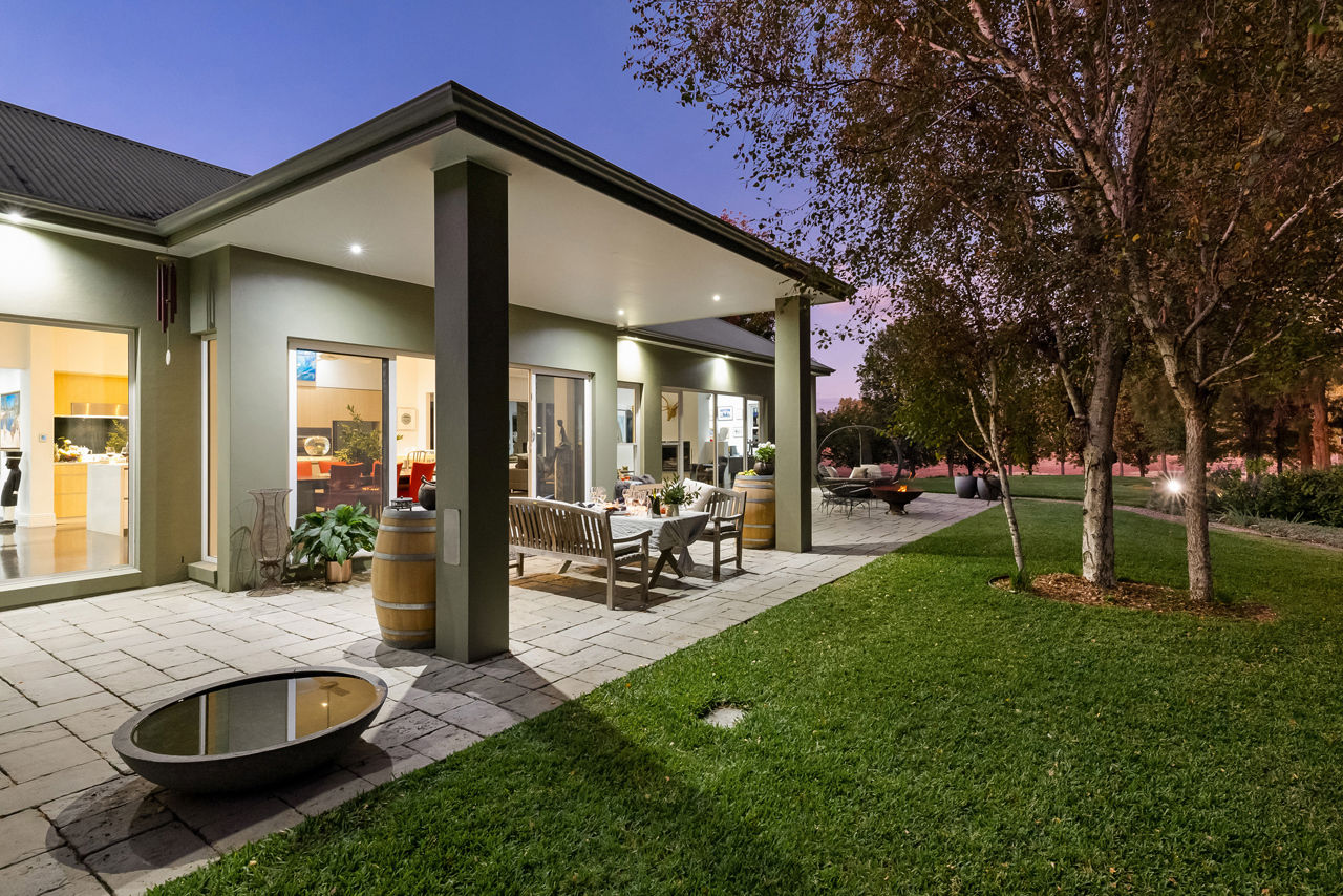The Gardens - Majestic Red River Gums line the riverbank and the gardens provide the perfect balance between the river and the house. The huge sandstone blocks and shale rock walls, on the river side, not only provides protection from the river, but also a viewing platform to watch the river life meander past. The gardens are teeming with a variety of native birdlife. For the chef, there is a fully enclosed vegetable garden with raised garden beds, water and netting.