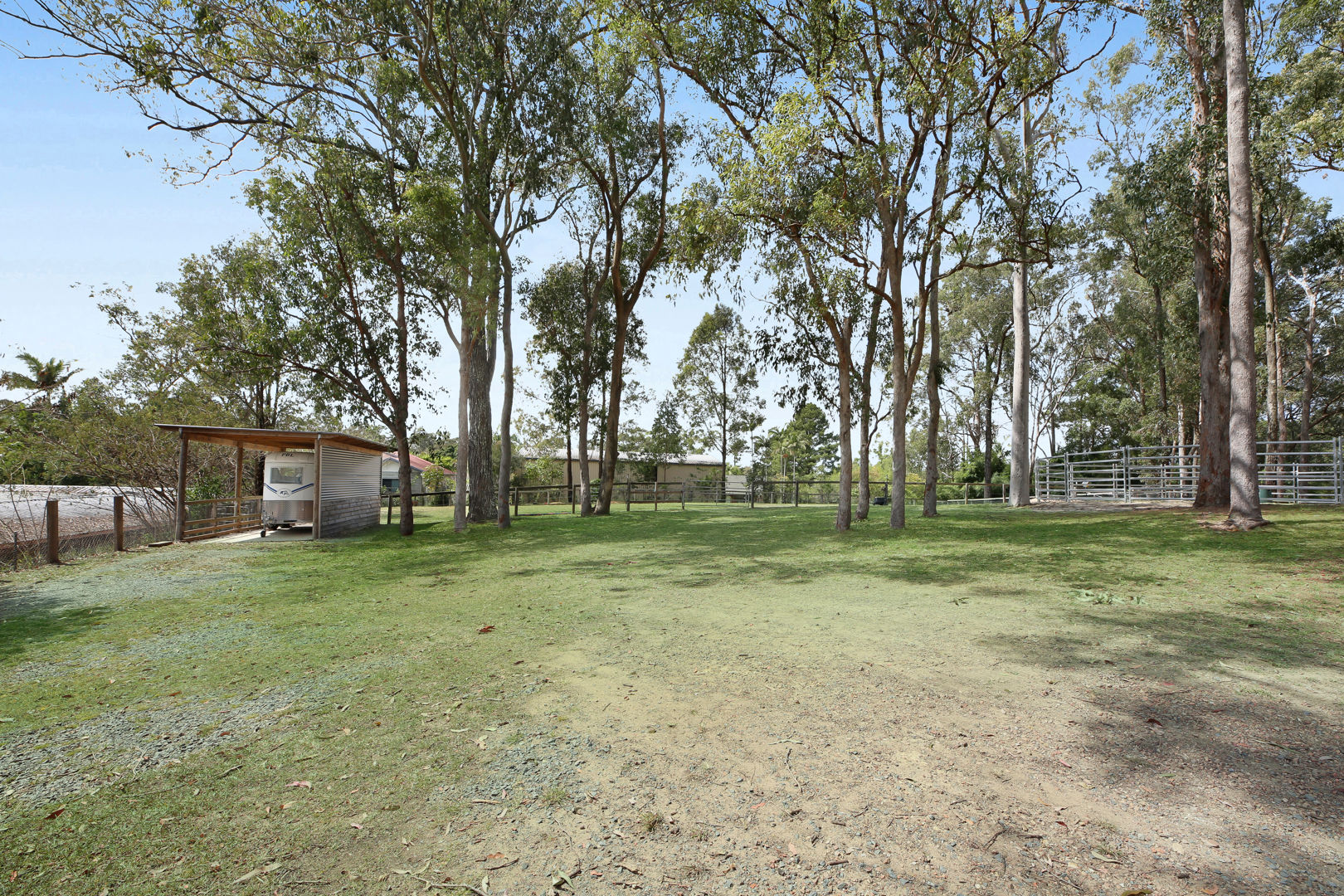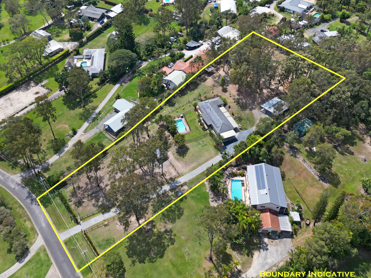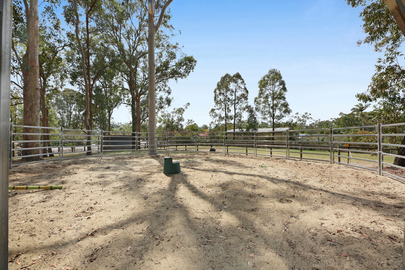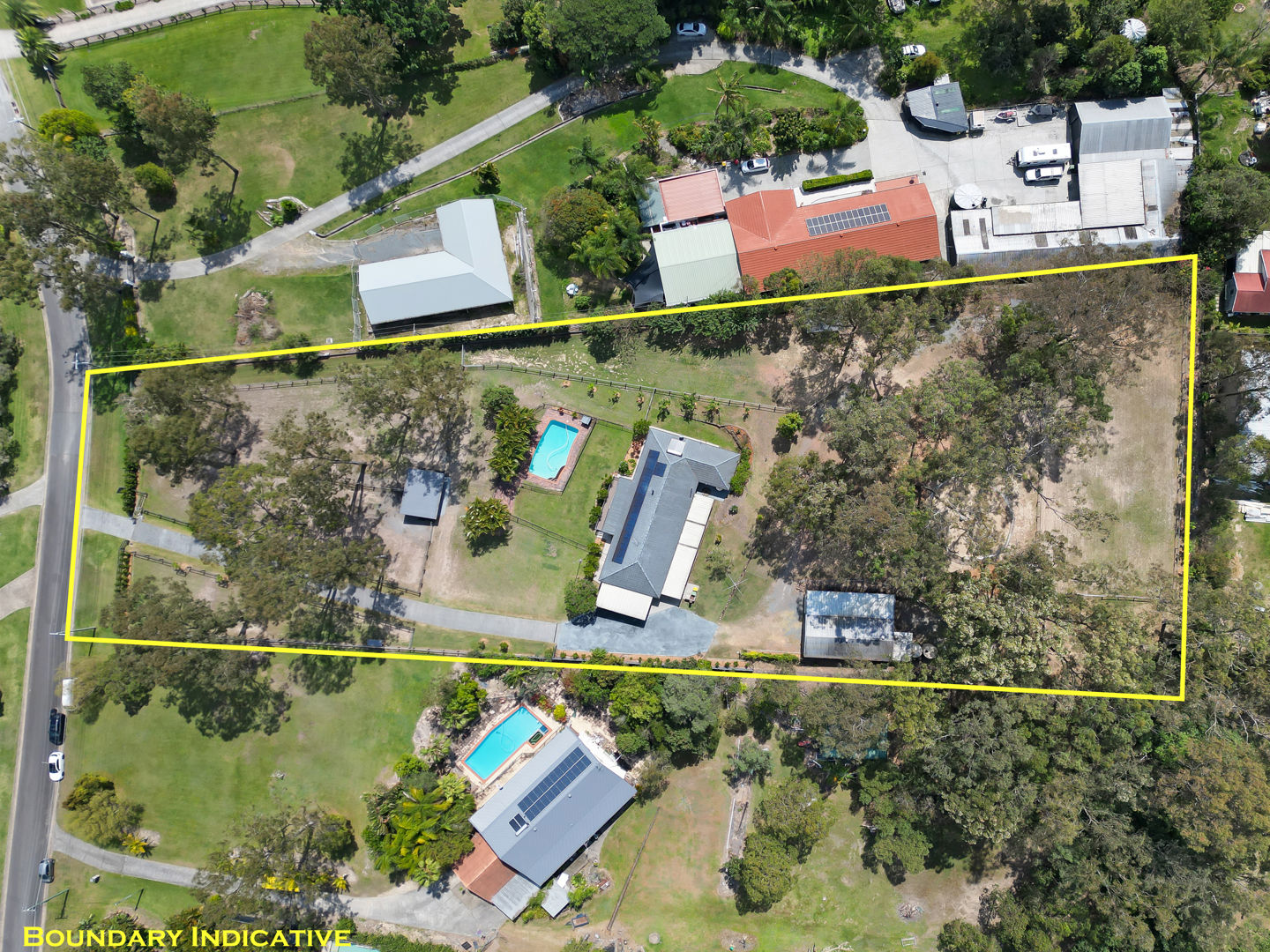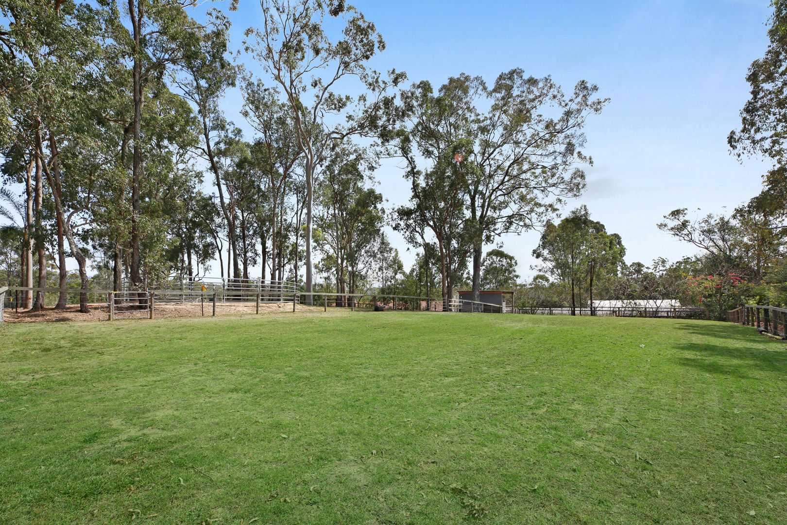 - A horse lovers delight: The property has been designed to accommodate horses, utilising all 2 acres to be able to have 5 generous paddocks, a smaller Shetland paddock, & have seasonal rotation, with equine grass seeding and fertilising. Entire property is fenced, equine mesh used, and quality wooden post and rail fencing installed. Stables specifically designed with careful thought to keep water out, keeps hooves dry with a fitted rubber base, can be used to stable overnight, and built to stand the test of time! The crusher dust base (instead of concrete) was engineered to have a base that is gentle on horses legs, and drainage was also installed so the stables are never damp. Further shelters are placed in the other paddocks at the side and rear of the property. The round yard has a sand base; the 50 x 18 arena was left as a grass base to offer added paddock space when needed. The shelter for the float doubles as a stable, can be split in 2, and access to parking the float is driving straight into the shelter. Another large shelter in the side paddock is very convenient & built to house horses in a premium shelter. The main front paddocks, and rear arena/paddock have automatic sprinklers. Water is accessible at all points and paddocks on the property. Star picket fencing has been used to extend front paddocks for day grazing and create paddocks at the top of the property. Horses can roam the property, or there are multiple horse gates to close off areas and separate horses as desired. Easy access for mowing and maintenance. Power & lighting have been installed in the stables, as well as a spotlight for the paddocks. A short 10-minute walk with the horses to the pony club, and all the fabulous Shows that the Mudgeeraba Show Grounds offer