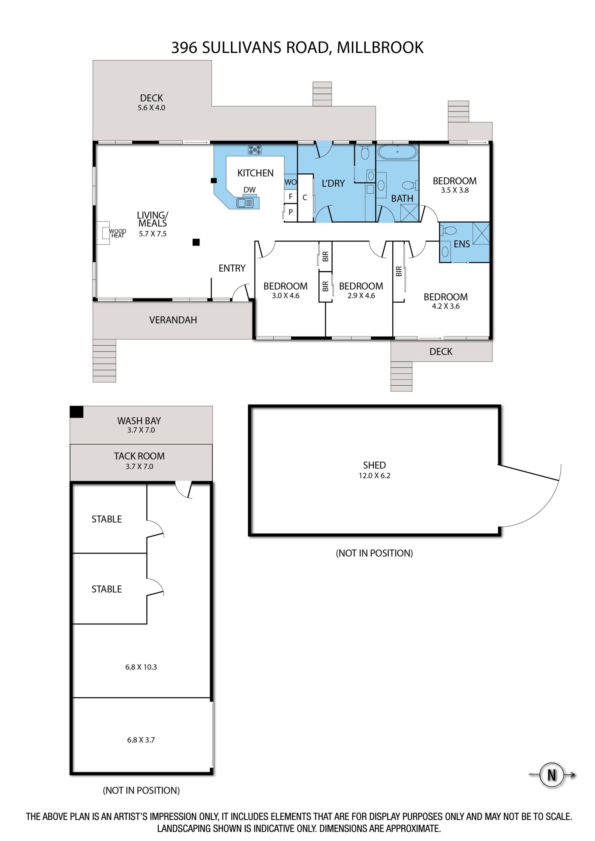 Designed for serious equestrian pursuits, the facilities include a fully drained, floodlit 60m x 20m arena, ideal for year-round training. The quality Colourbond stable complex is fully powered and plumbed with hot and cold water, incorporating two 3.5m x 3.5m concrete-floored stables with covered frontage, a 7.5m x 3.5m float bay/garage, open storage bay, locking tack and feed room, and a concrete wash bay with overhead wash.