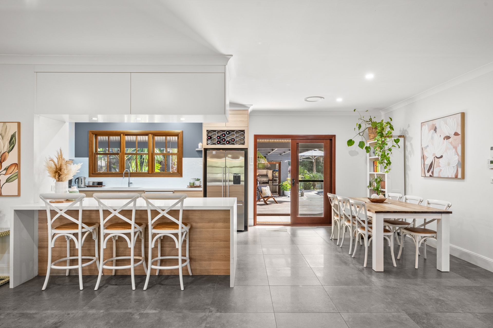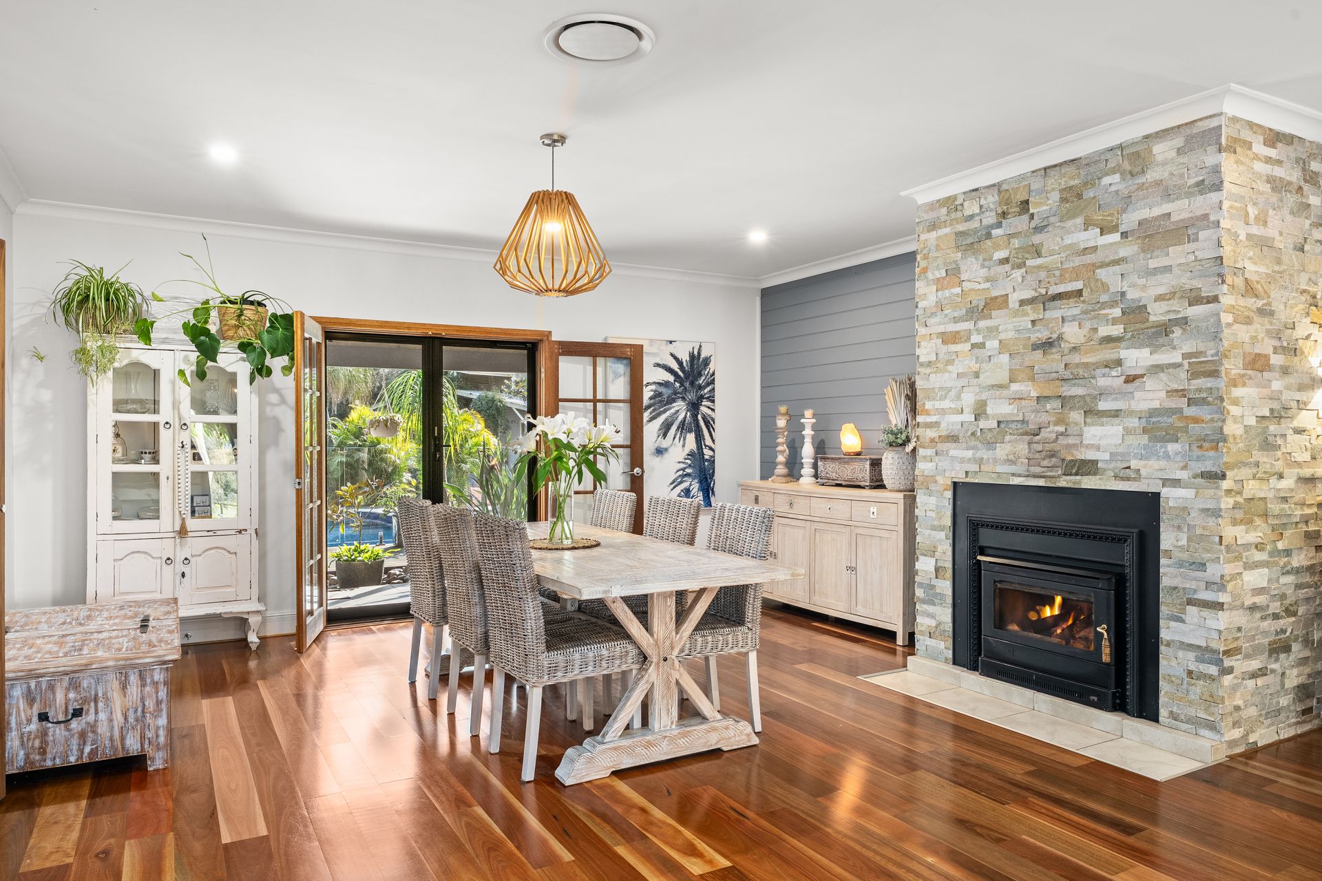 Inside, soaring ceilings and a warm, welcoming layout create a sense of openness, with multiple living areas, a formal dining room, and a show - stopping open plan kitchen, living and meals zone. The kitchen is designed for both everyday family life and effortless entertaining, complete with an induction cooktop, abundant storage, and sleek, modern finishes. Ducted aur conditioning and a slow combustion fireplace ensure comfort year-round.