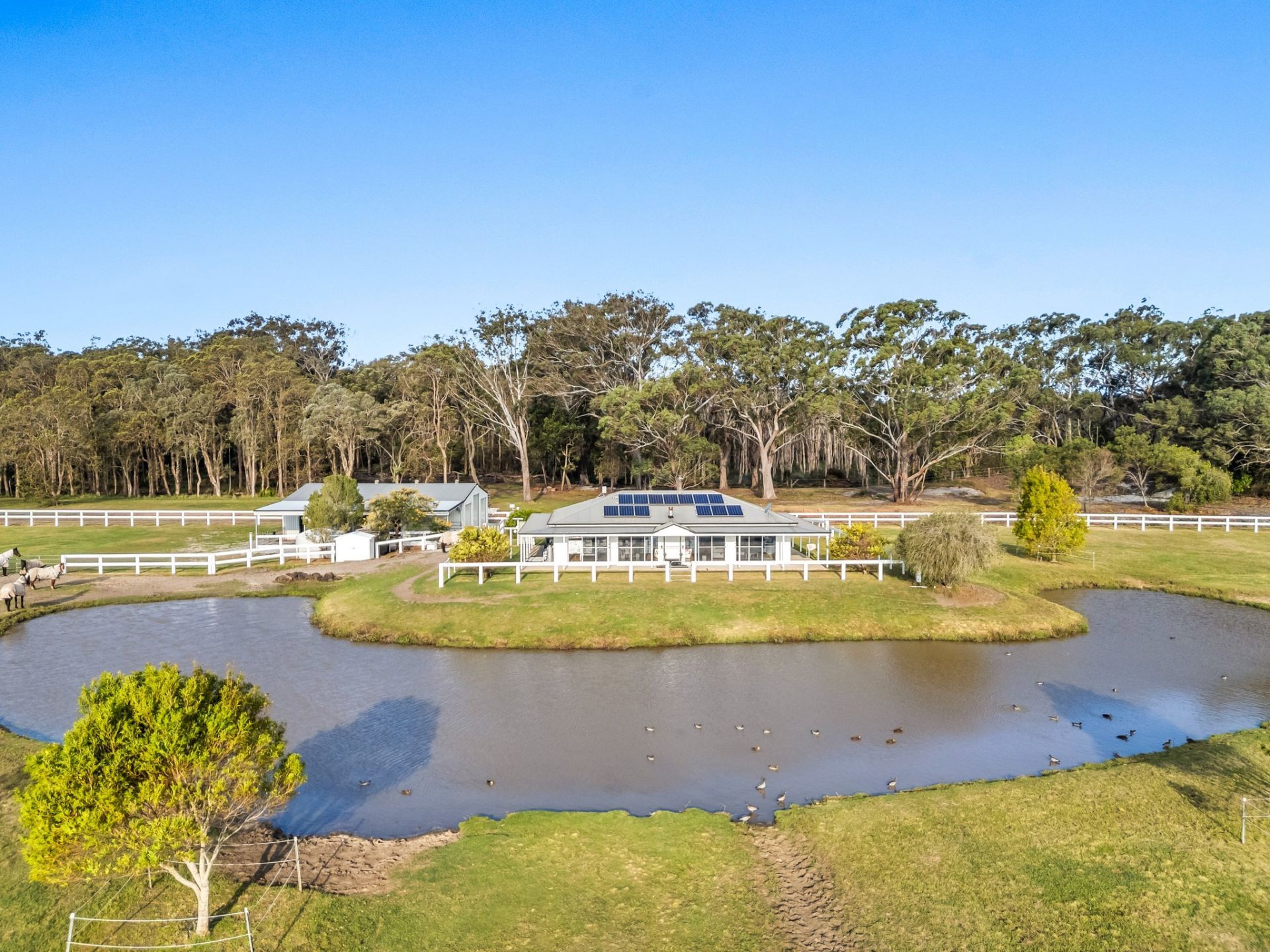 Water infrastructure is first-class, with three bores producing up to 4 litres per second via automated pumps, four tanks in total, underground irrigation with sprinklers to every tree, and two automatic water troughs positioned for easy livestock and equine access.
