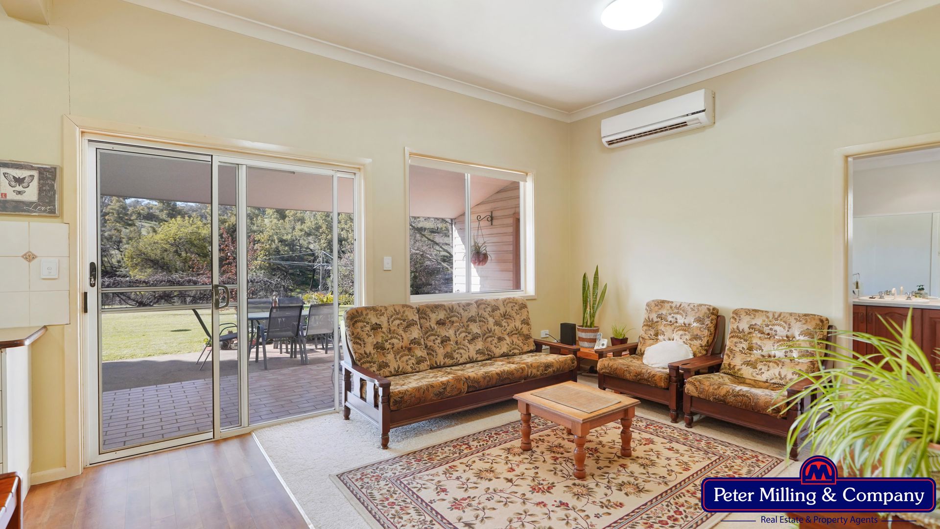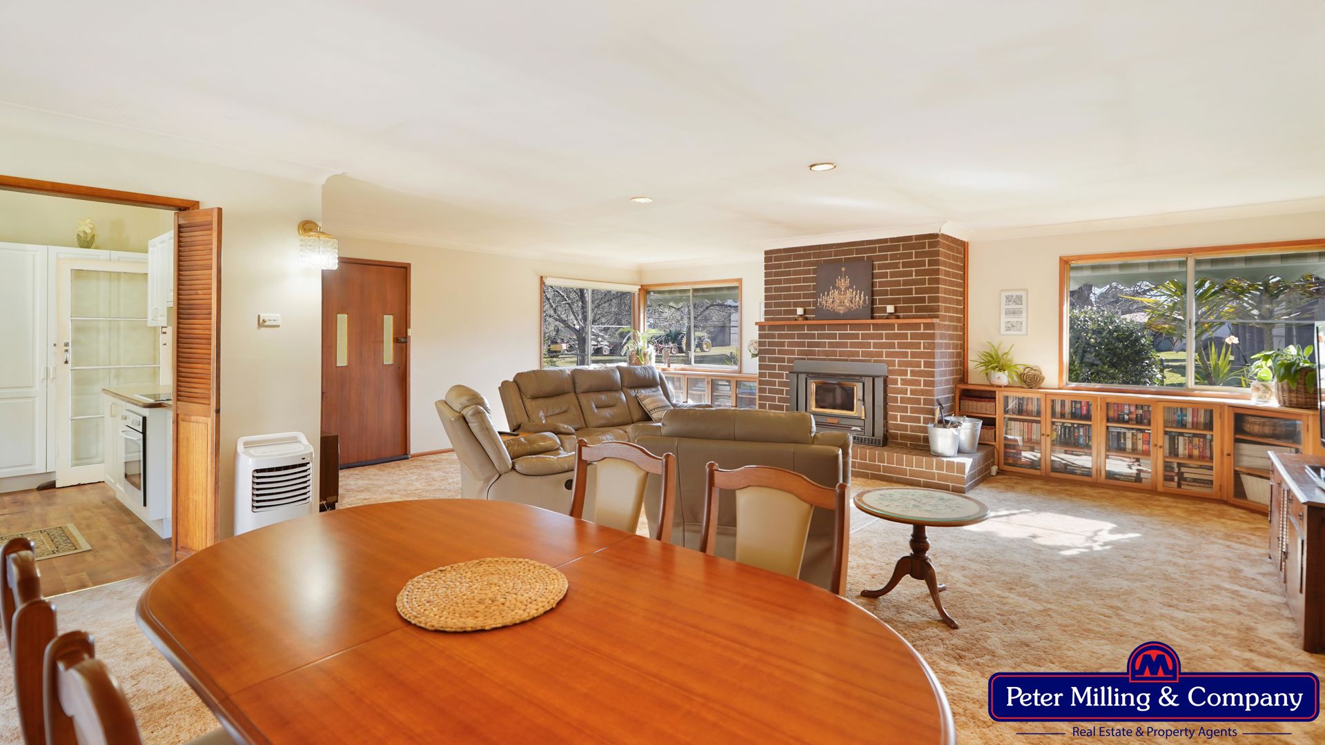 • Lounge/dining: carpeted, wood heater, reverse cycle air conditioning.