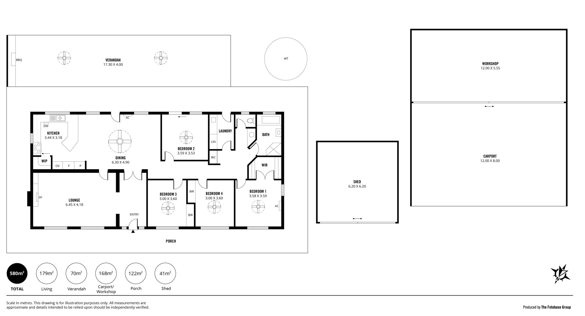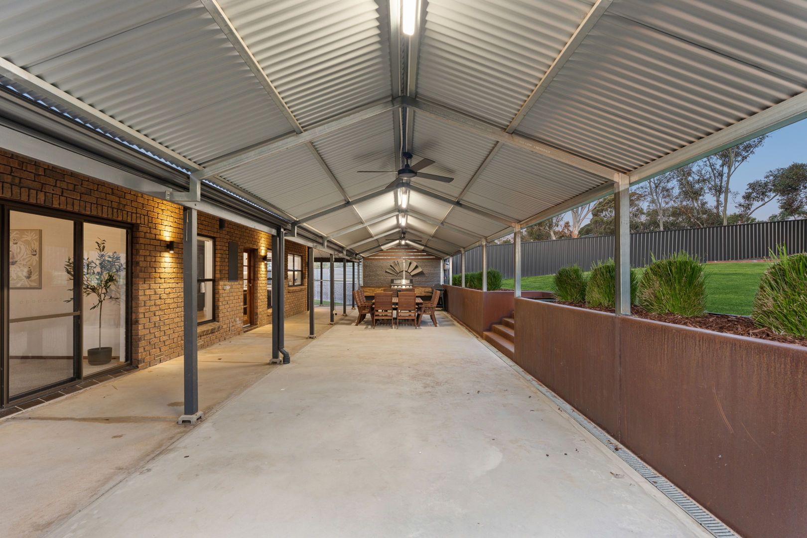 • 70m2 verandah space with outdoor kitchen and lighting and ceiling fans