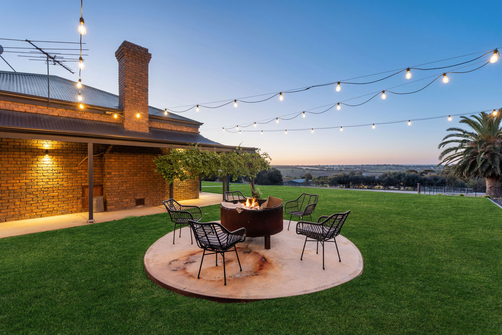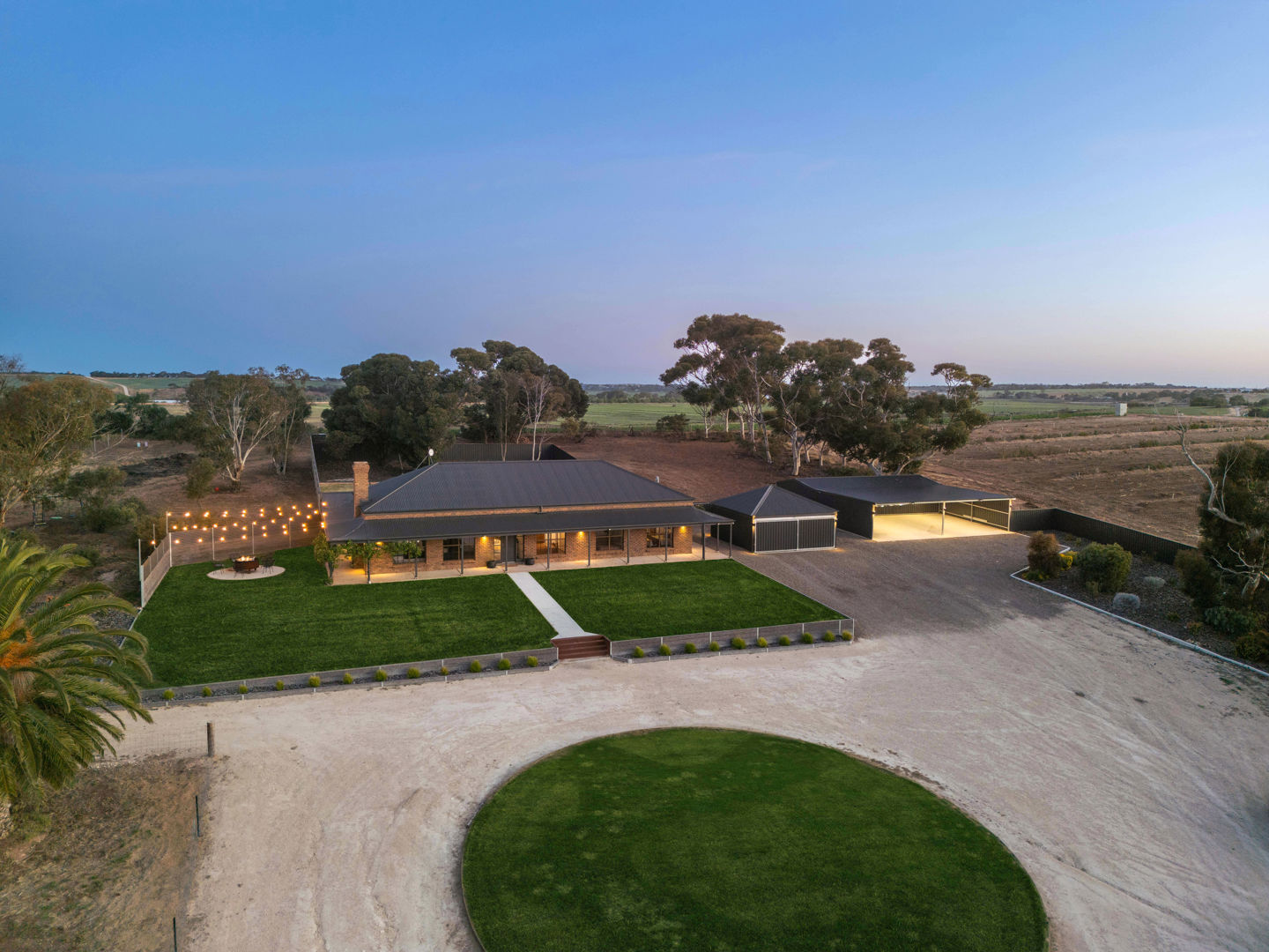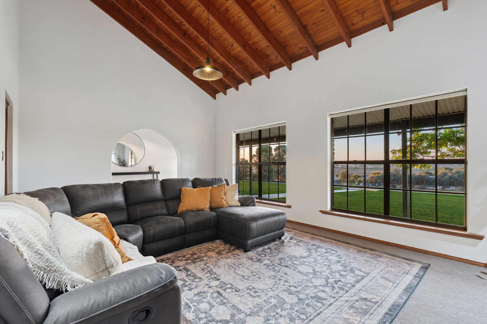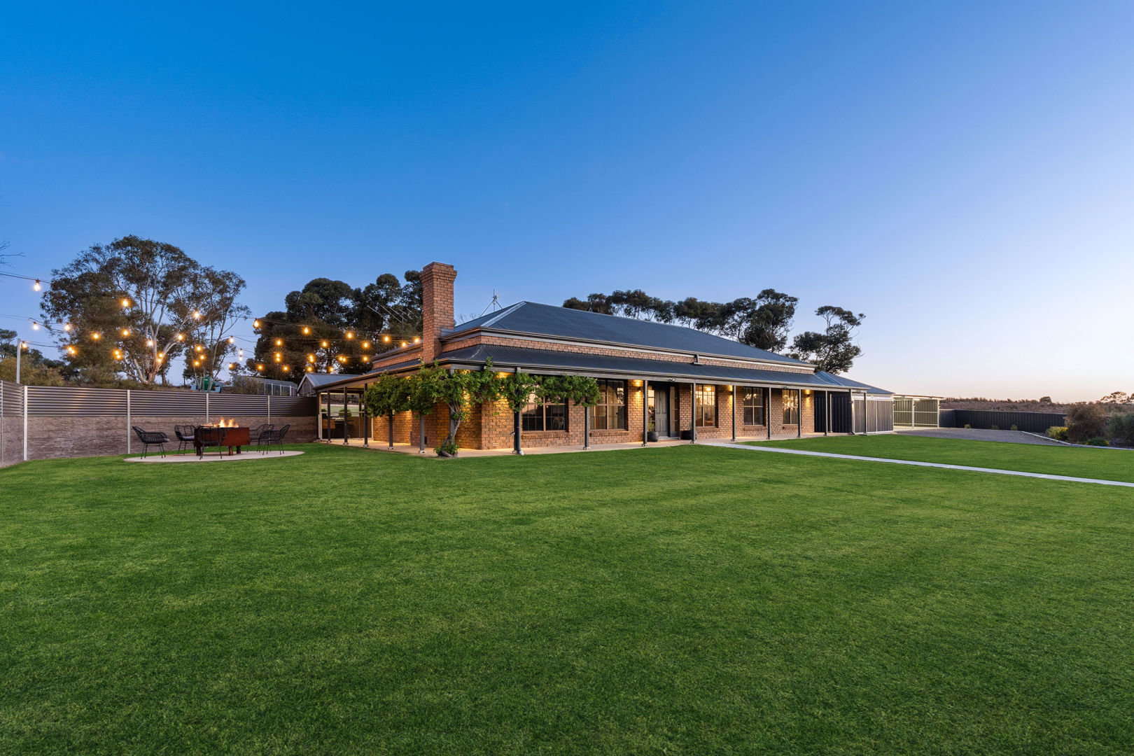 From its commanding appeal upon entering the driveway to the warmth of its interiors, every element of this home speaks to quality and enduring style. The double-brick construction, 3.2-metre ceilings, and exposed brickwork evoke a sense of heritage and permanence, while the elegant bullnose verandah wraps gracefully around the home, framing panoramic views across rolling farmland that stretch to the horizon.
