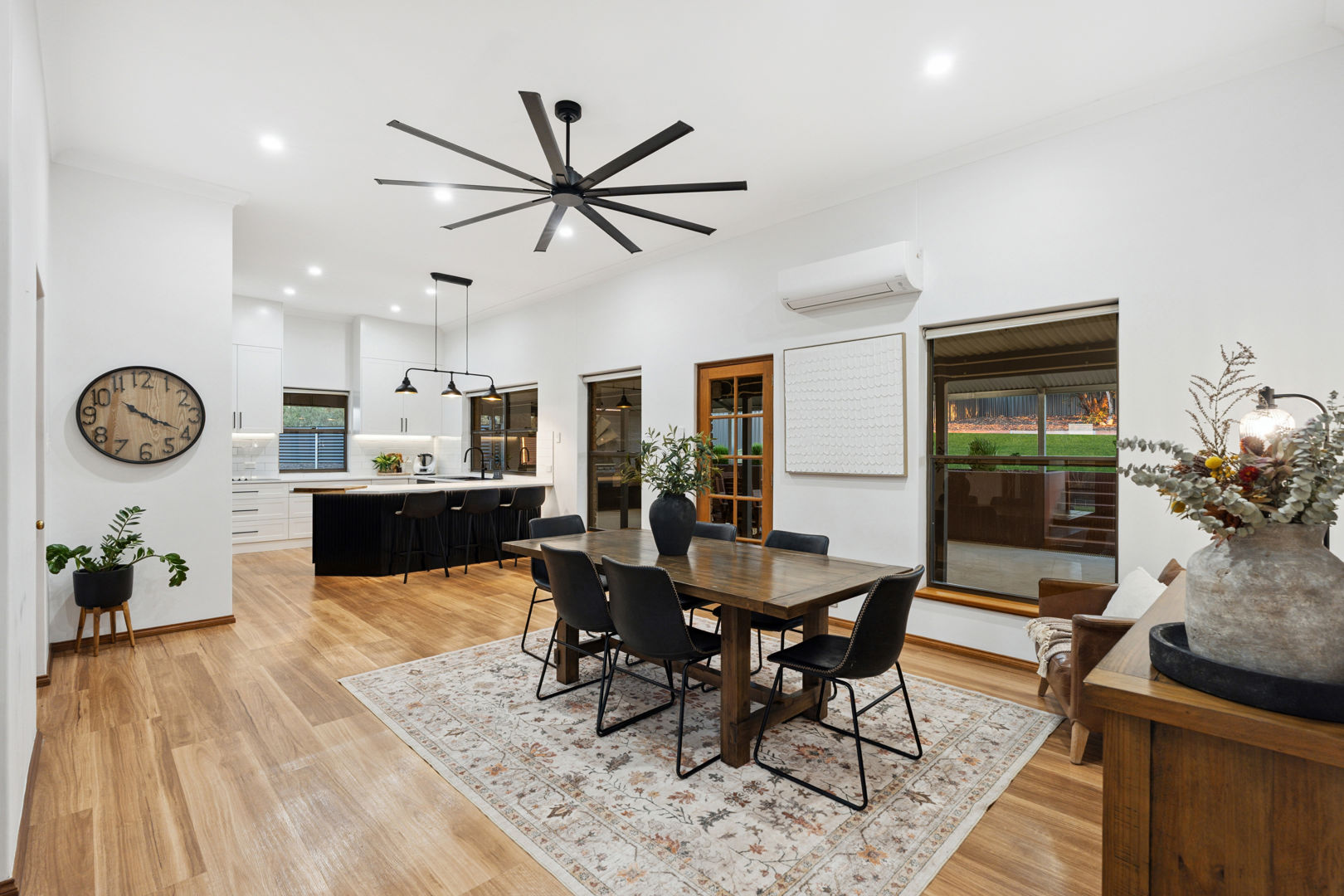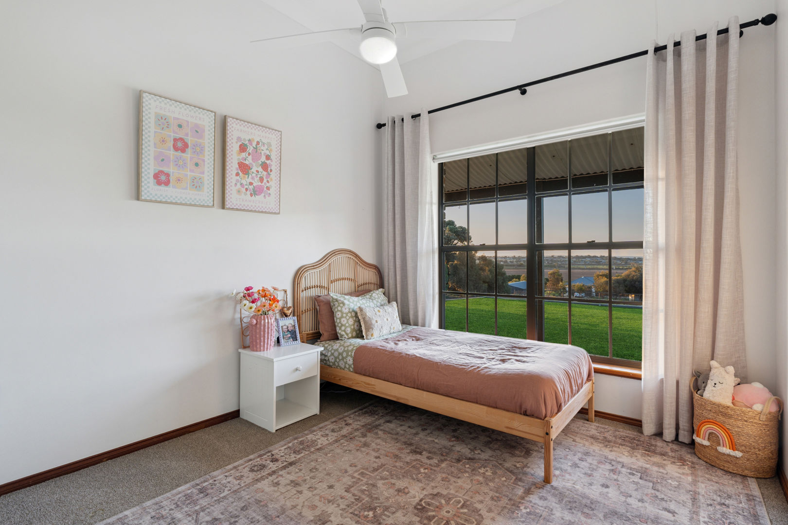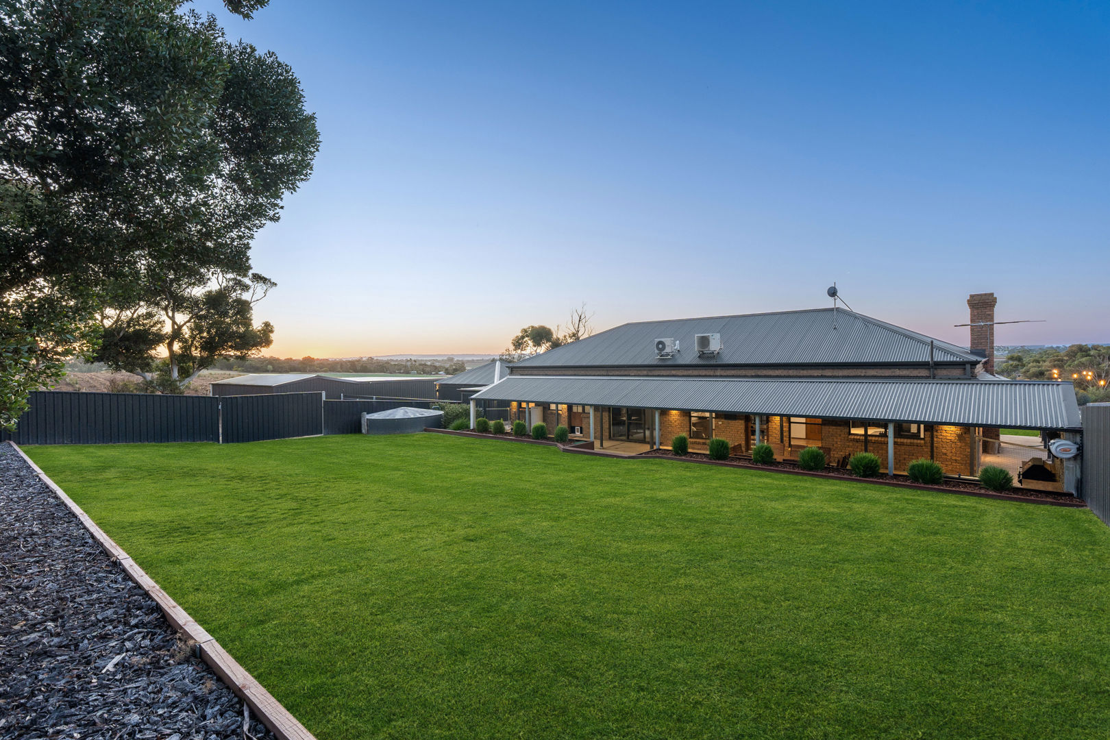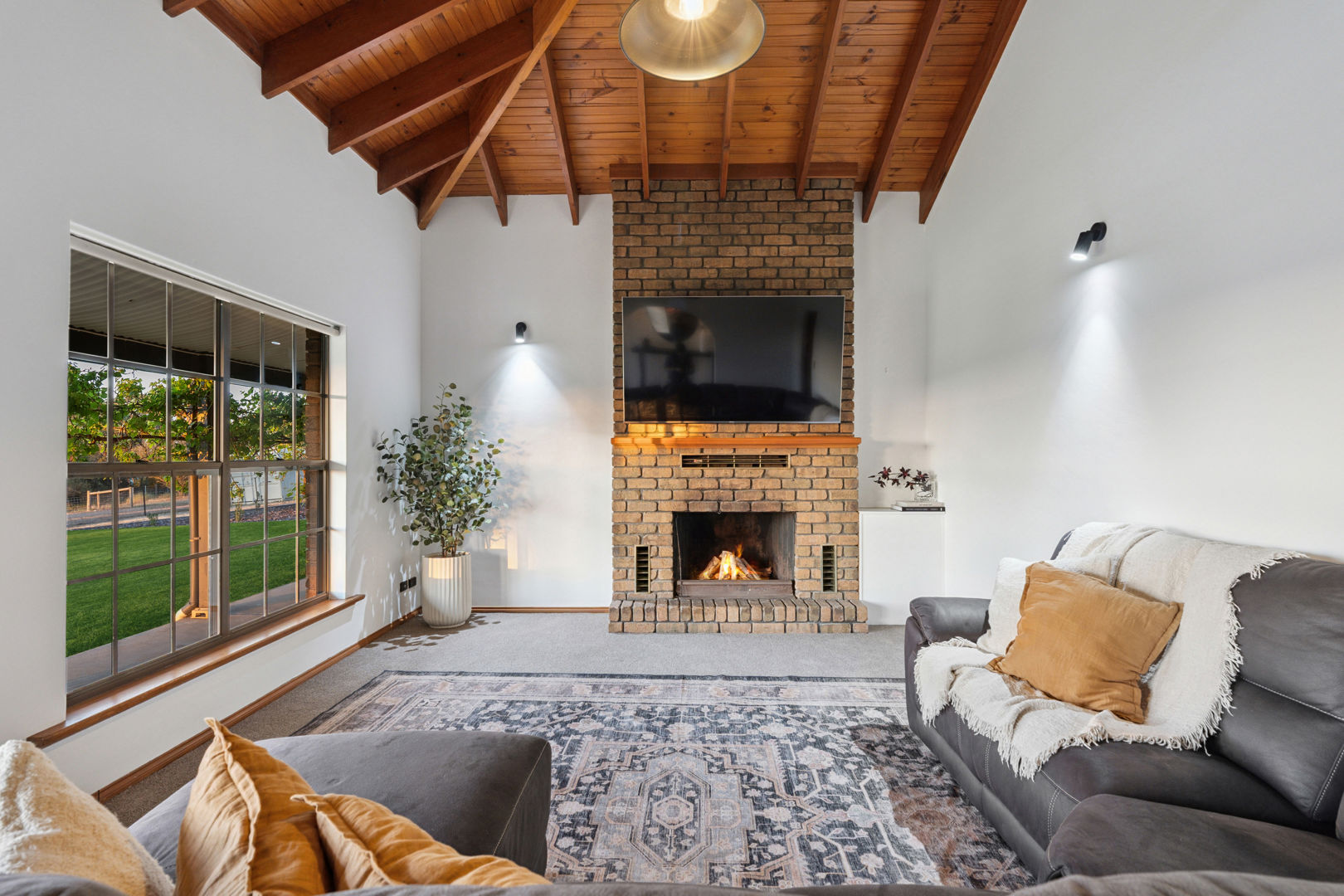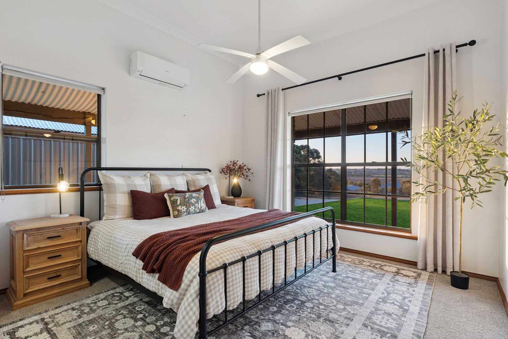 From its commanding appeal upon entering the driveway to the warmth of its interiors, every element of this home speaks to quality and enduring style. The double-brick construction, 3.2-metre ceilings, and exposed brickwork evoke a sense of heritage and permanence, while the elegant bullnose verandah wraps gracefully around the home, framing panoramic views across rolling farmland that stretch to the horizon.