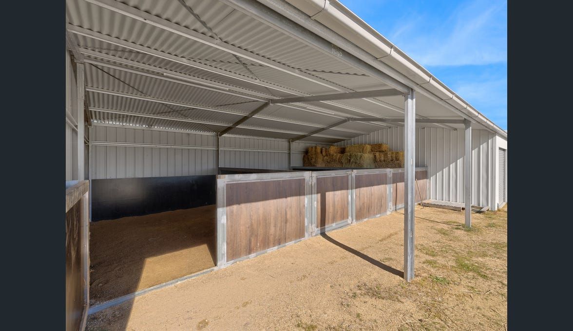 This property has been carefully planned and setup by our vendors as a prime equine enterprise, the main features include automatic opening front gates, central laneway, reticulated troughs in each of the 8 paddocks, 3 stables & tack room measuring 17m x 6.6m, 60m x 40m sand arena, 16m round yard, 2 bay hot wash and stock guard electric fencing.