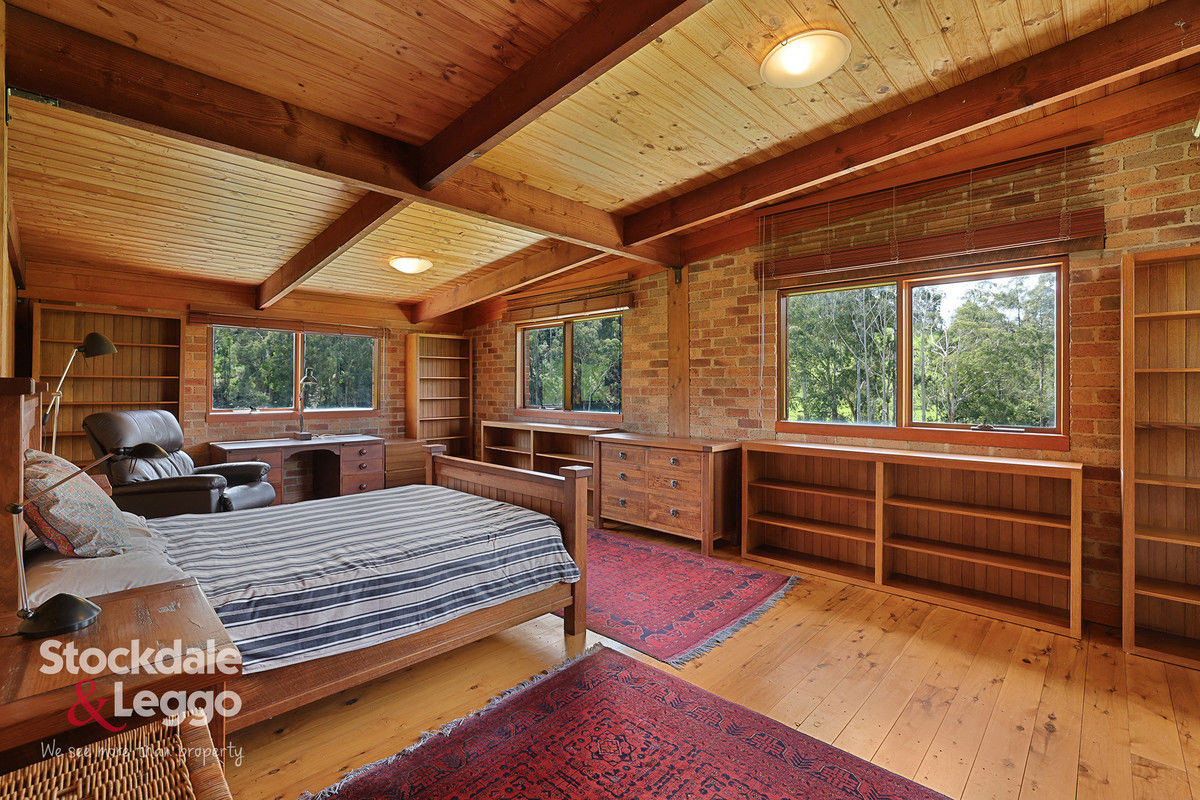 Set among the rolling hills of the Strzelecki Ranges, 140 Mirboo-Yarragon Road combines masterful post-and-beam craftsmanship with the beauty of a tranquil rural setting. Spanning 43.51 acres, the property offers fertile farmland, abundant water, and a home that blends bluestone, rich timbers, and brickwork into a timeless retreat.