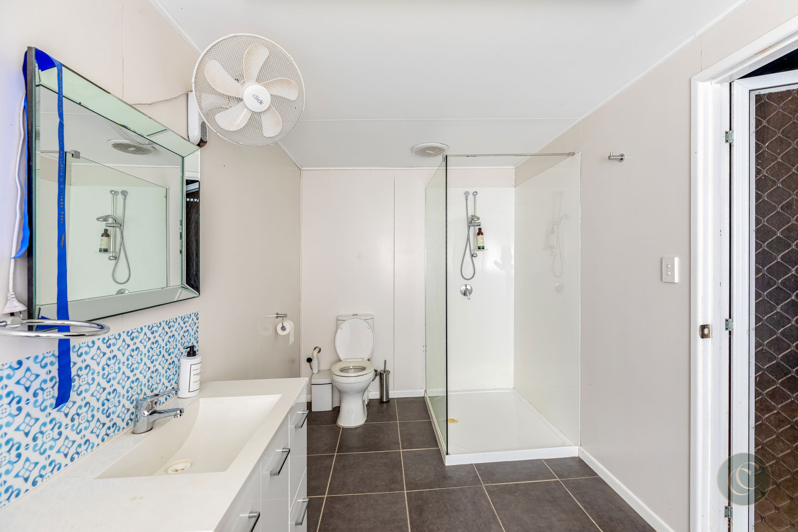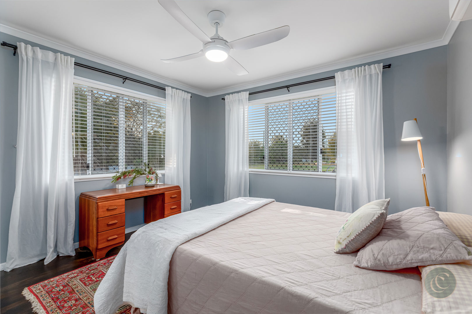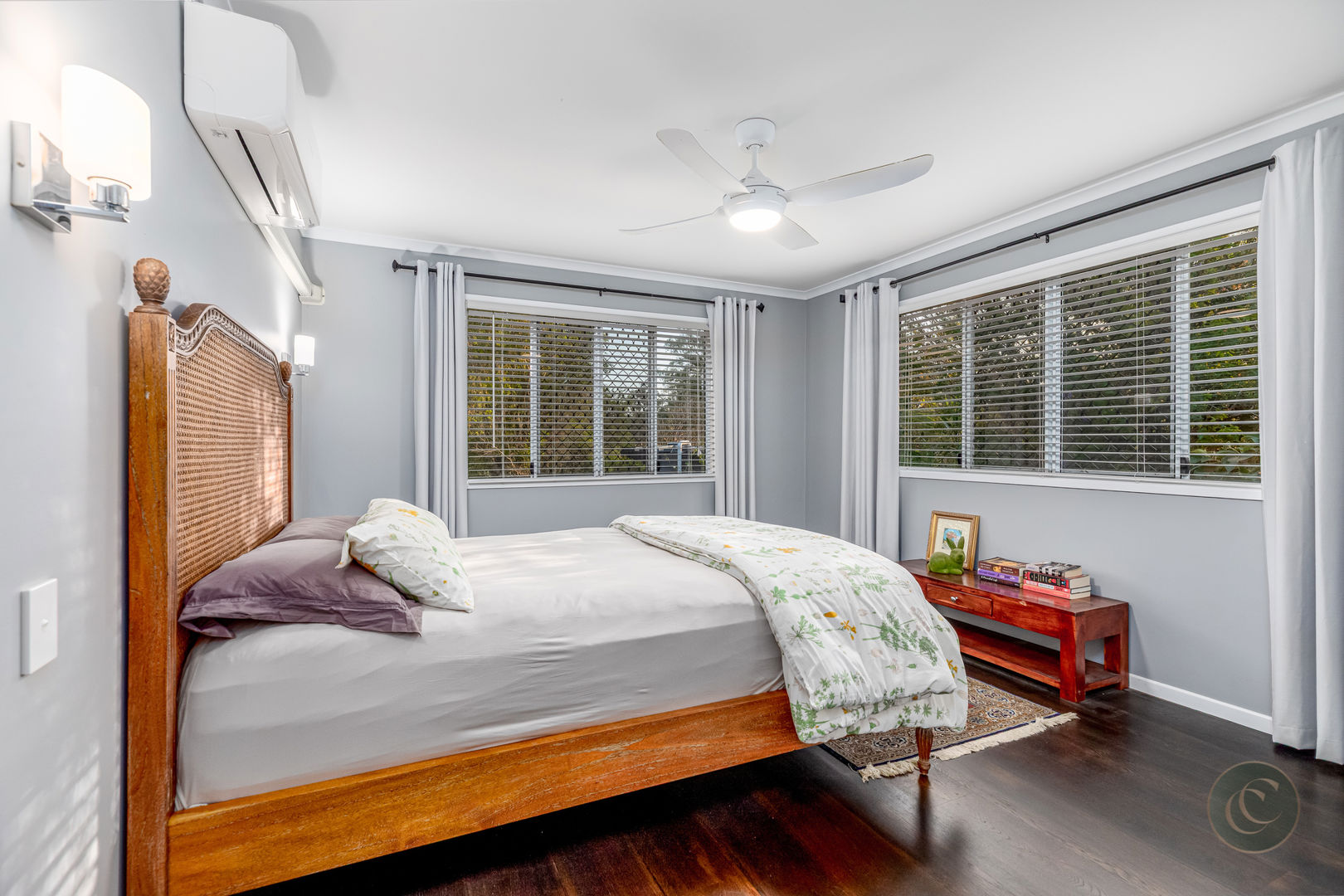 Accommodation includes three spacious bedrooms, all with air conditioning, ceiling fans and built-in wardrobes. The master suite is a serene retreat featuring a barn door entry, soaring ceilings, a large walk-in robe and a modern ensuite. There's also a light-filled home office with sliding doors that lead directly to the back garden, offering a quiet and inspiring place to work from home. Practical features such as Crimsafe screens on external sliding doors, a secure enclosed backyard, and air-conditioning in every room ensure comfort and peace of mind.