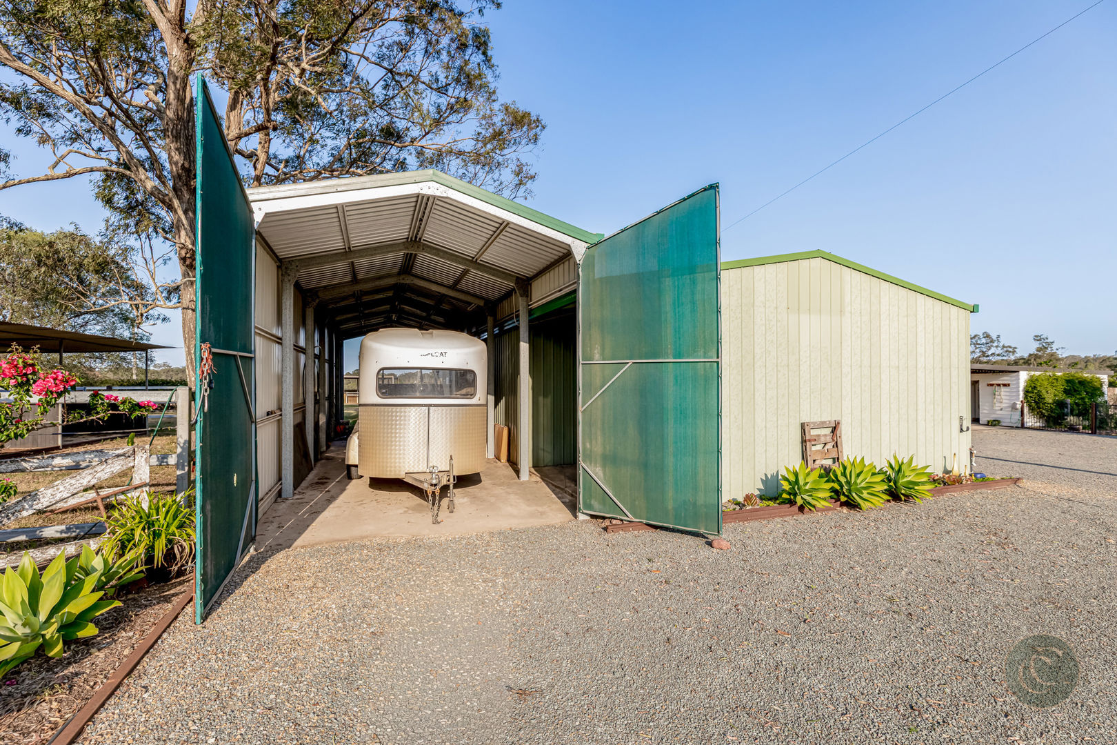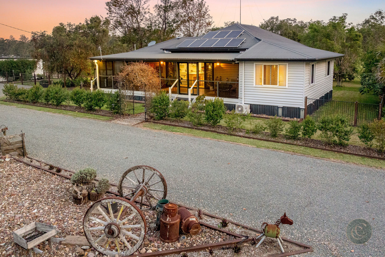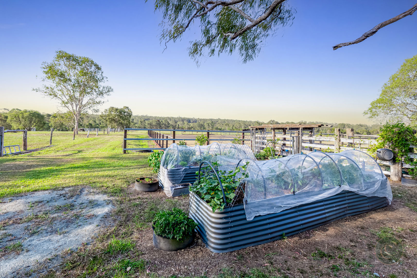 Outdoor living is equally impressive. The newly resurfaced driveway is framed by railway tracks creating a charming and well-defined landscape. For the avid gardener, the property is a dream - with established vegetable garden and fruit trees including mango, citrus, pomegranate, mulberry, olive, passionfruit, dragon fruit, and more. Teddy bear magnolias, frangipani, crepe myrtles, jacaranda, bougainvillea and star jasmine also feature and the entire park-like gardens are serviced by a comprehensive irrigation system.