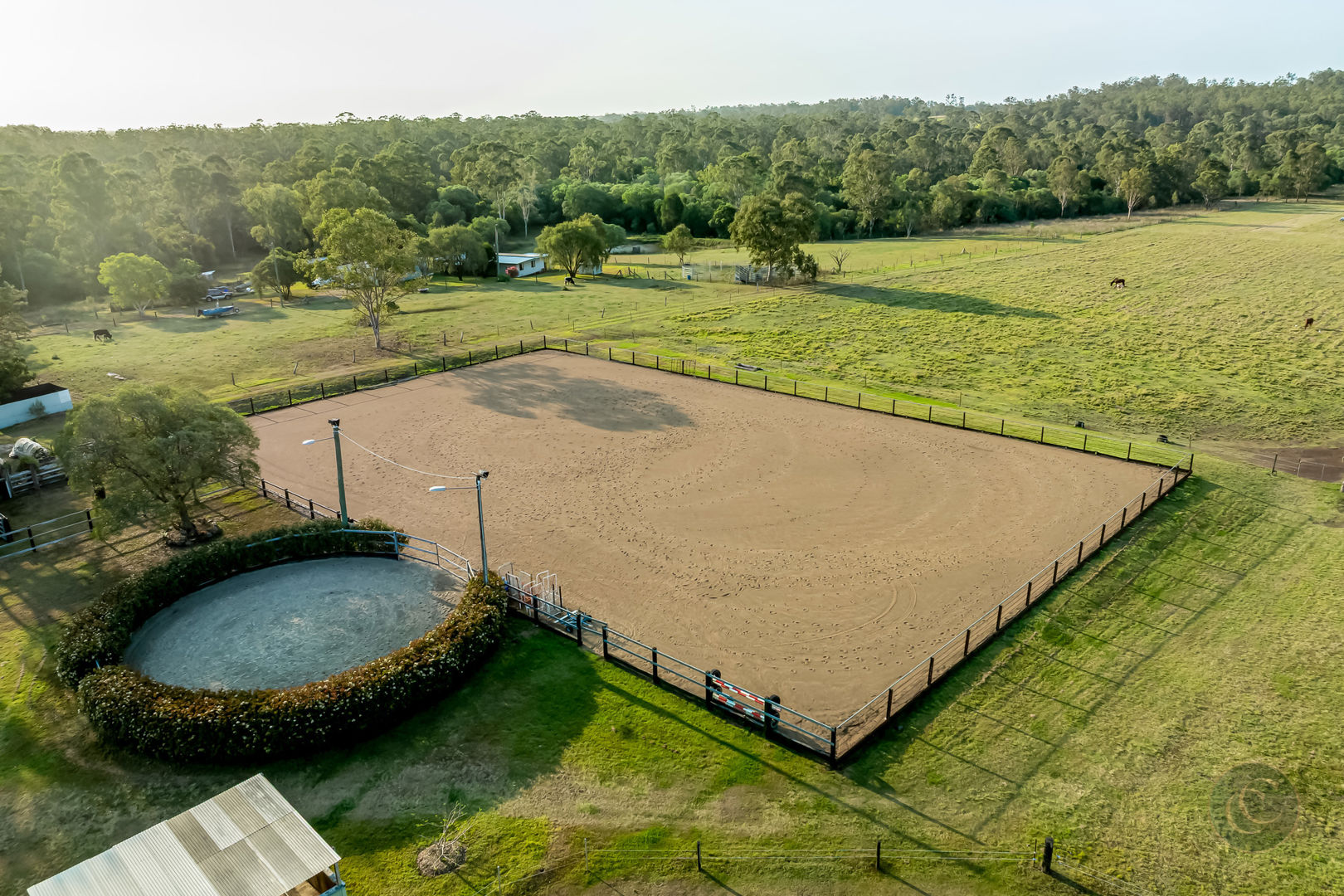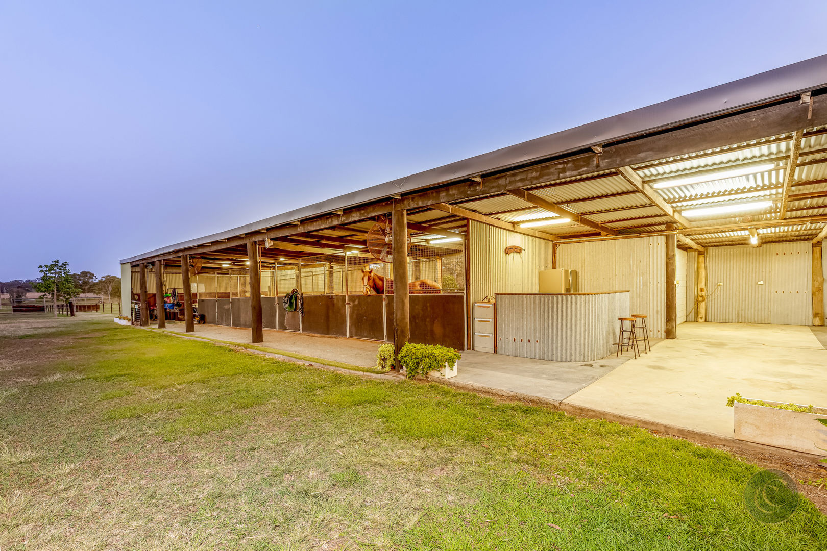 For the equestrian enthusiast, this property is exceptional. Facilities include a 70 x 50 fully fenced sand arena and 19-metre sand round yard both under lights, post and rail holding yards with shelter, and an undercover concrete double wash bay with vet crush. There are four stables with newly opened doorways to yards fitted with automatic water troughs, lights and fans, The equine infrastructure is complemented by new horse-safe electric fencing dividing the land into 12 separate paddocks most with shelters and is complete with laneway access around the perimeter of the property and isolated dams.