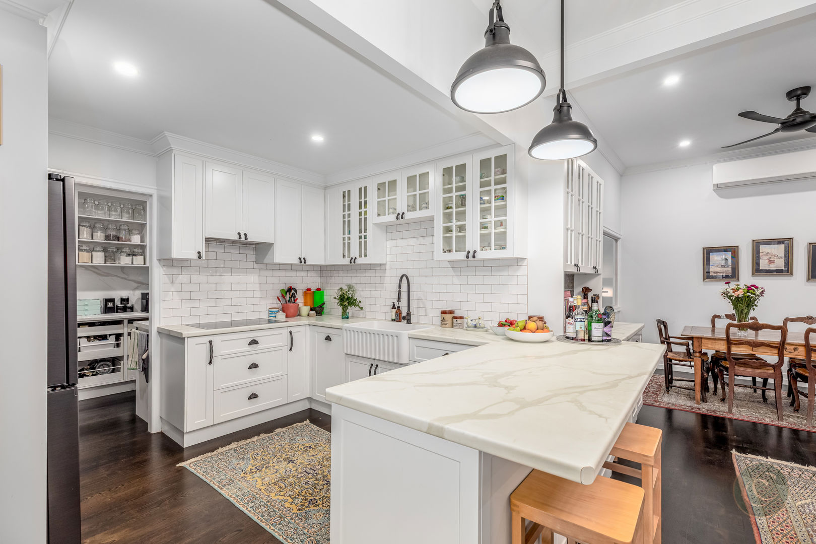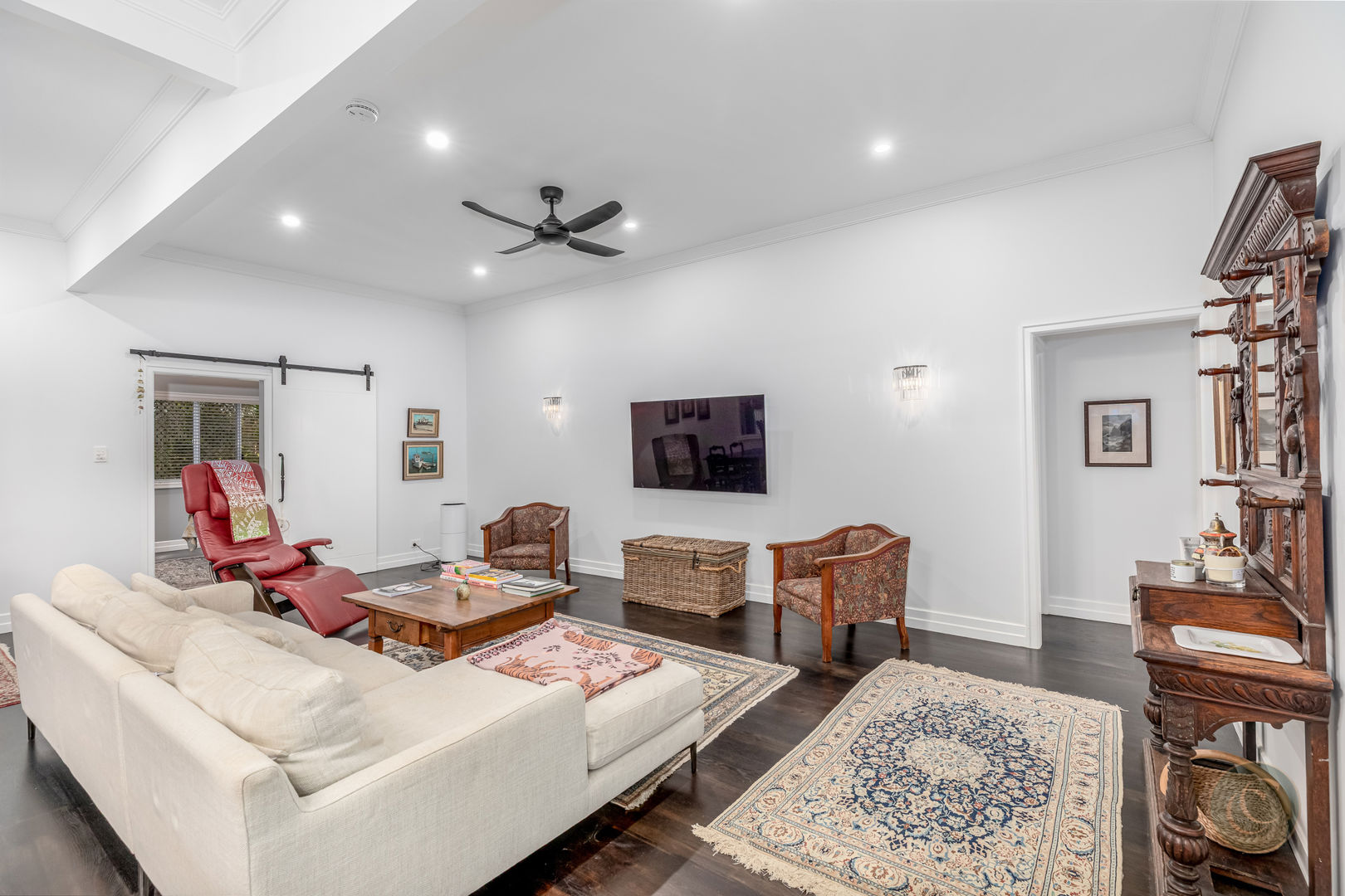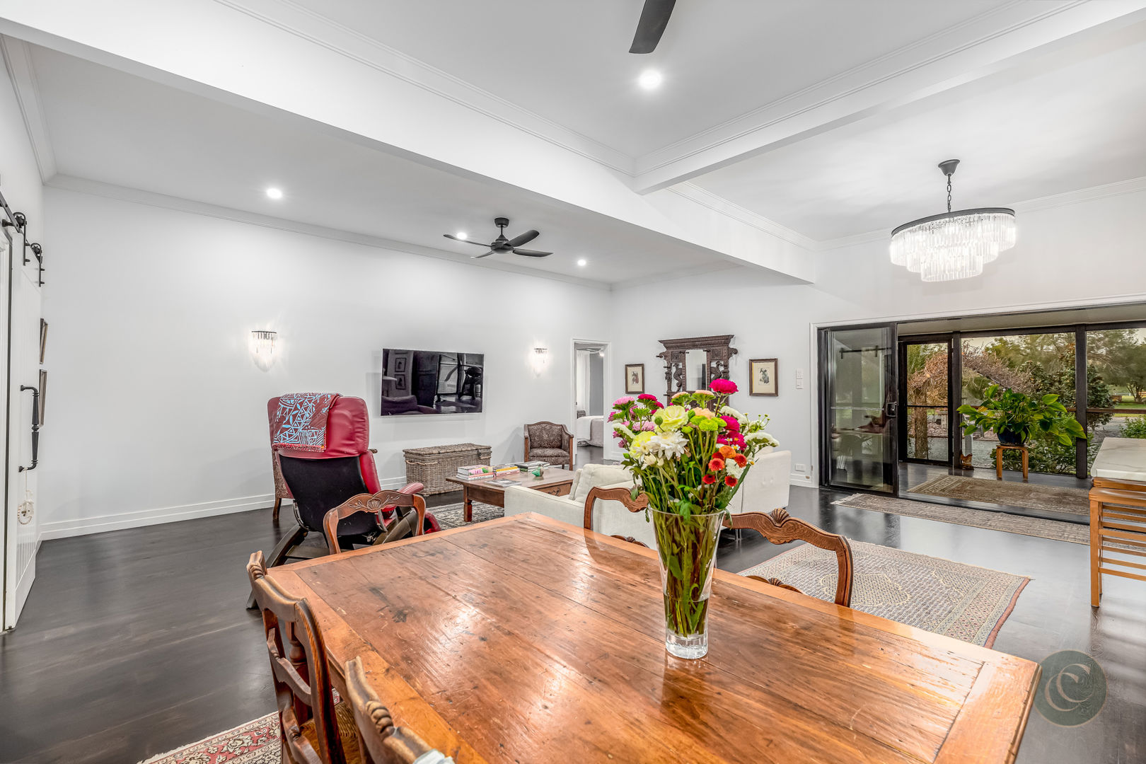 Step inside to discover a warm and inviting home with American oak hardwood floors flowing through light-filled spaces. The state-of-the-art kitchen is a true centrepiece, fitted with premium AEG European appliances including a steam oven, induction cooktop and Bosch dishwasher. With a generous butler's pantry and USB ports integrated into the power points, it's the perfect space for both everyday cooking and entertaining. The adjoining dining and living areas open seamlessly to a fully enclosed Florida room, creating a year-round indoor-outdoor living zone that overlooks the picturesque gardens.