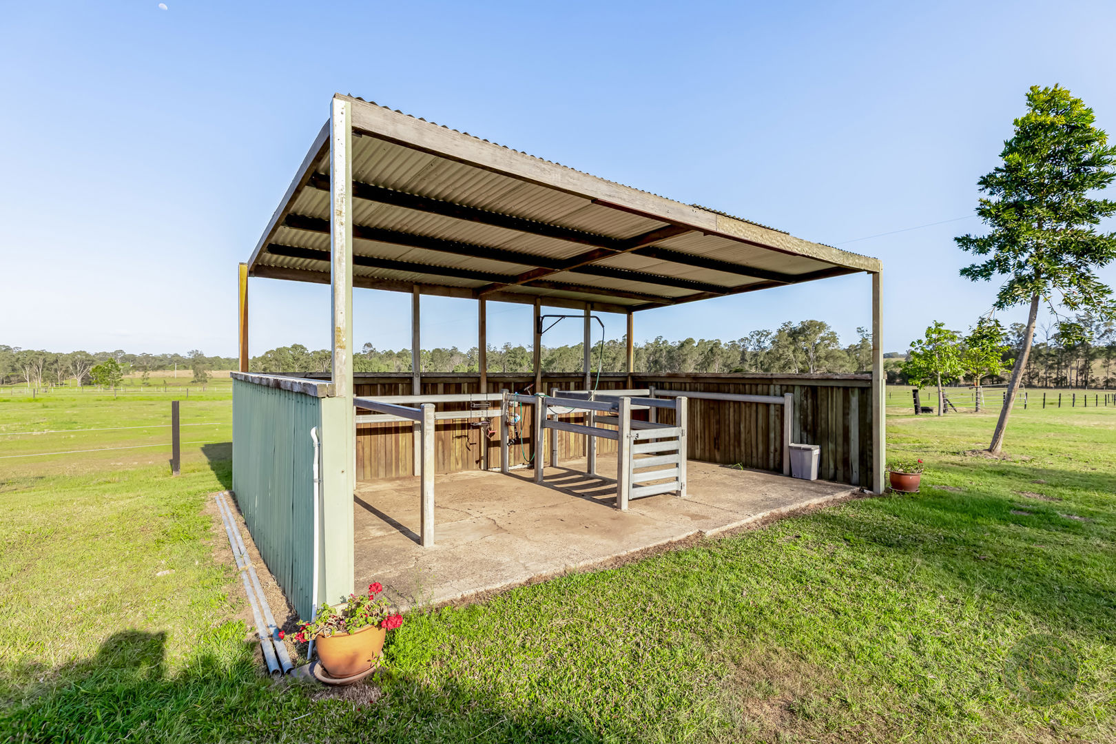 Pasture improvements include 10 acres over-sown with Rhodes and lucerne and currently 12 horses are agisted with room for more. Supporting infrastructure includes secure automated gate system, three sheds, undercover feed and tack rooms, toilet and shower amenities and kitchenette area making it a dream set-up for agistment, training or personal use.