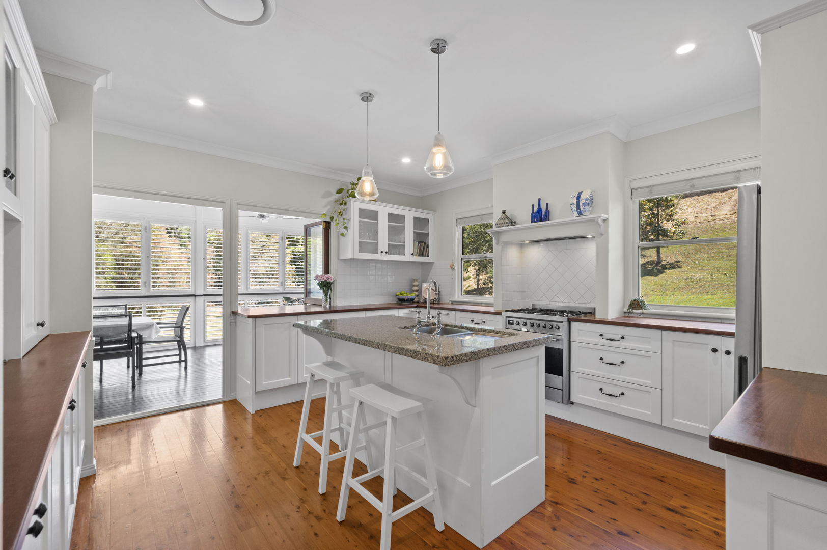 Offering 5 bedrooms in total, the private master suite occupies its own wing, featuring a spacious bedroom with French doors leading to the front verandah where you can enjoy the tranquil outlook and cool afternoon breezes. A walk-in robe and stylish ensuite with twin granite-topped vanities, timber cabinetry adds a touch of luxury.