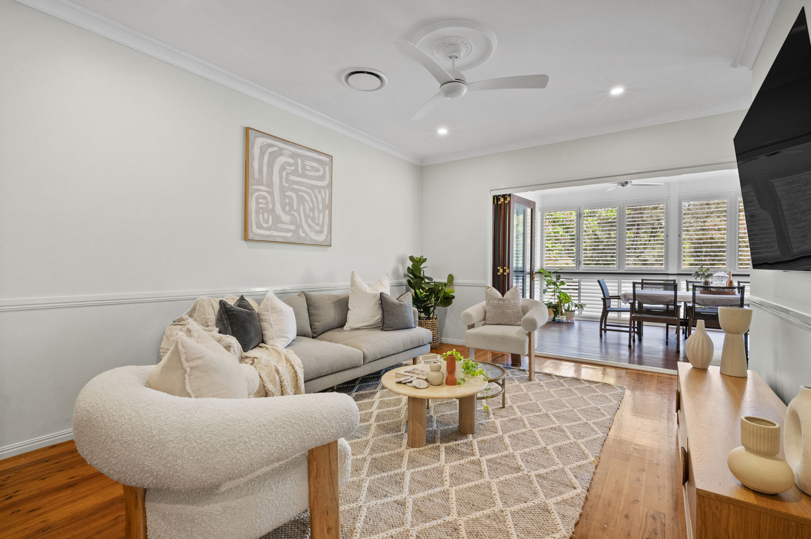 The generous dining room, sunlit sitting area with window seat, and elegant formal lounge all open onto the expansive covered deck, complete with plantation shutters and screens providing a year-round haven for entertaining or simply soaking up the peaceful surroundings.