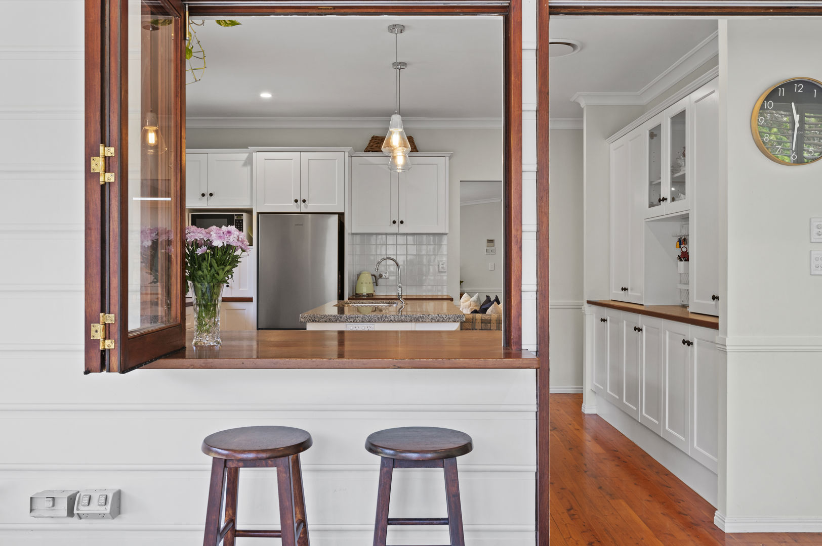 At the heart of the home lies a stunning French provincial-inspired kitchen. Perfect for the passionate cook, it features quality Smeg gas cooktop and electric oven, stainless steel Bosch dishwasher, a central granite island, and rich Jarrah timber benches. A large servery joins the kitchen with the deck, linking indoor comfort and outdoor living.