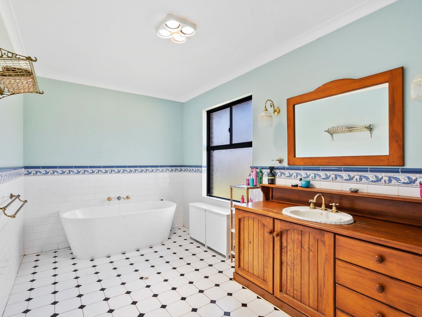 • Massive main bathroom with bath and single vanity