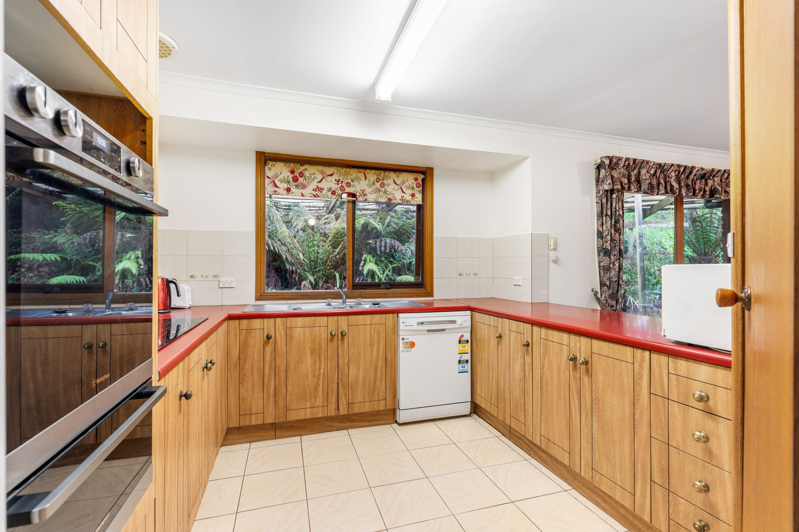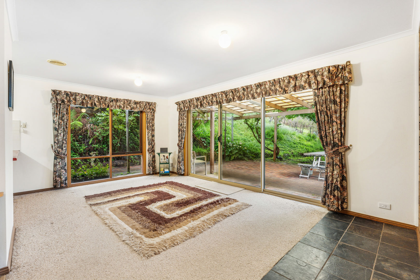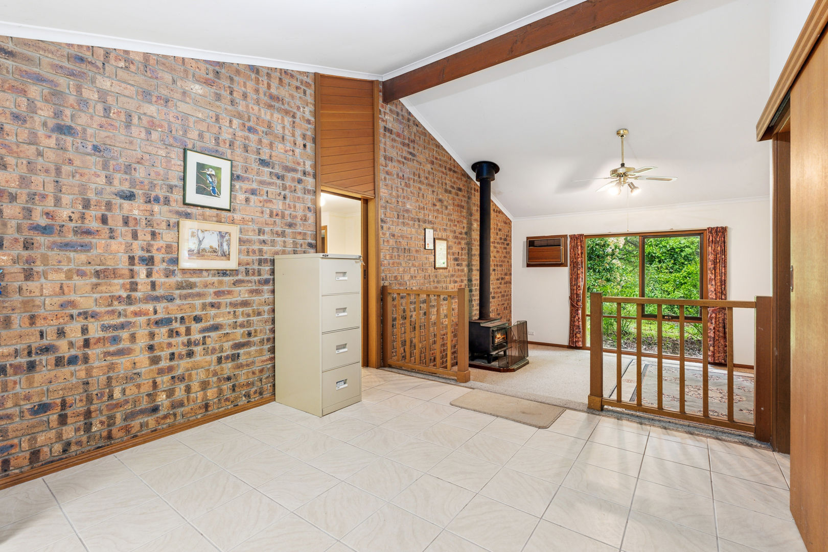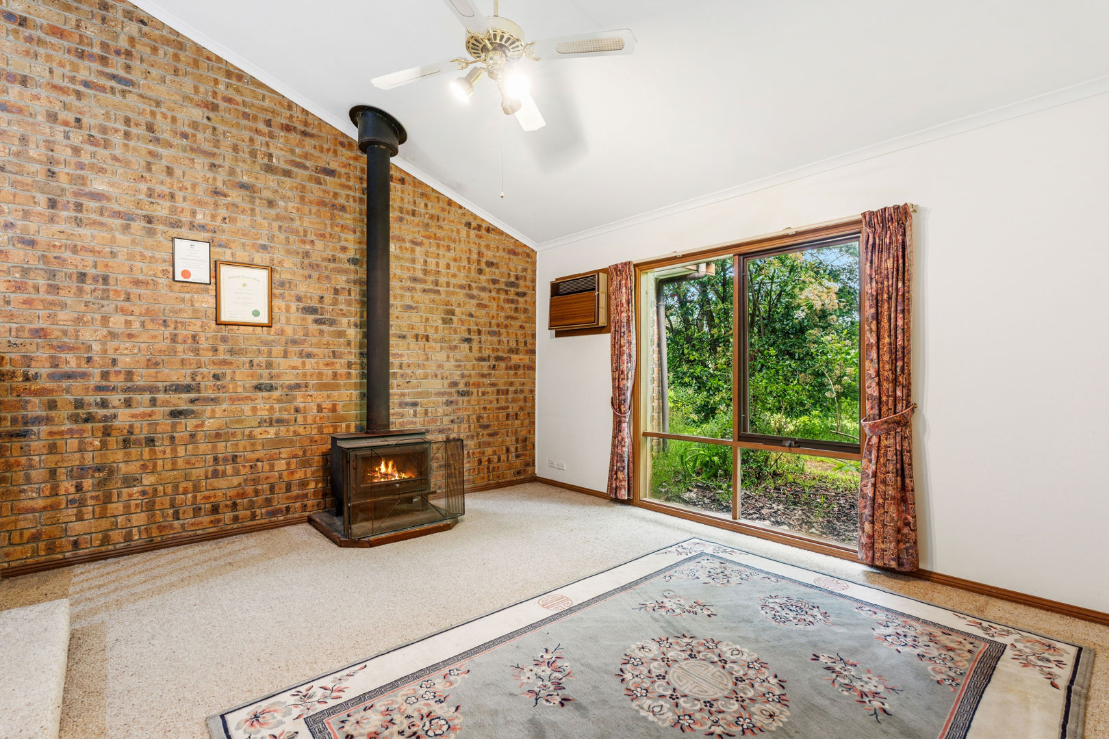 Tucked away among the trees and down the tree-lined driveway, this 1987 brick veneer home offers three great sized bedrooms, a large sunken family room with a slow-combustion heater, air conditioner and a ceiling fan, exposed brick wall, a separate dining room, a well-appointed kitchen with a meals area and an additional lounge room with large glass sliding doors overlooking the farm. Each living and dining room can be separated with sliding doors to help with noise reduction and temperature control. The extensive, high roofed verandah offers an open entertaining space which also continues along the rear of the home with a shade cloth cover perfect for a fernery or herb and vegetable garden.
