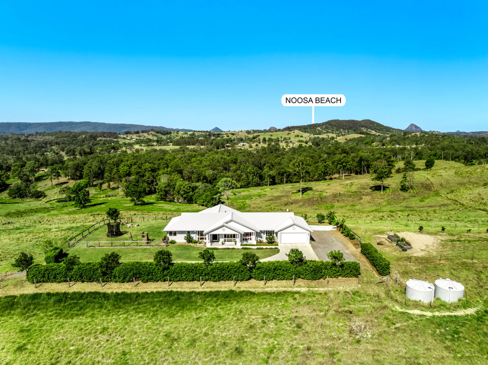 Noosa Hinterland: Elegant Hamptons Home, 360 Views, 40 Useable Acres